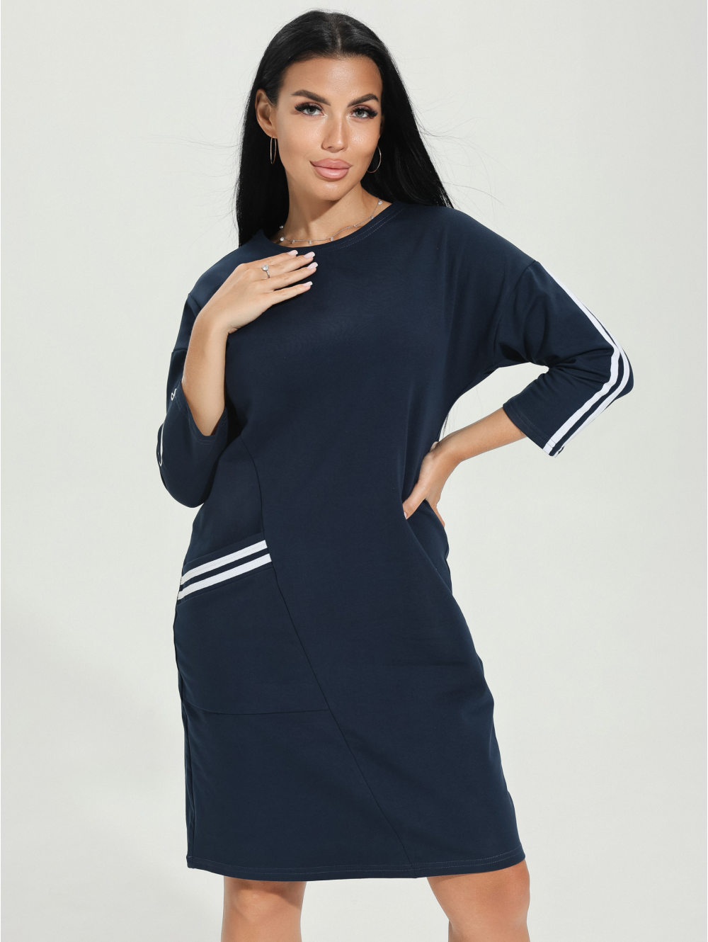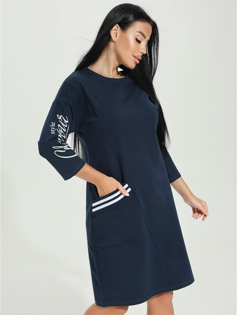 Стильным дополнением в нашем платье стали лампасы и печать.