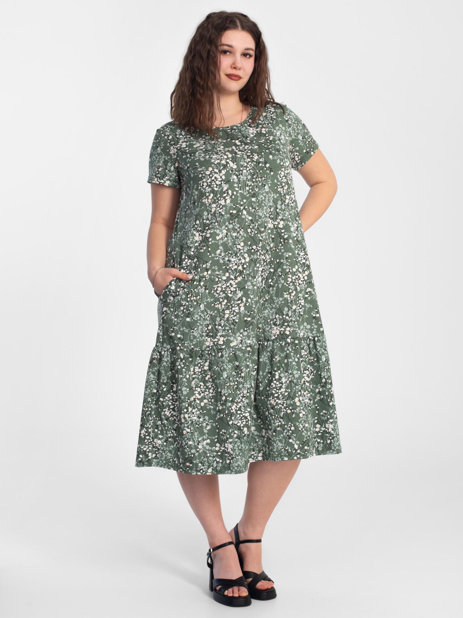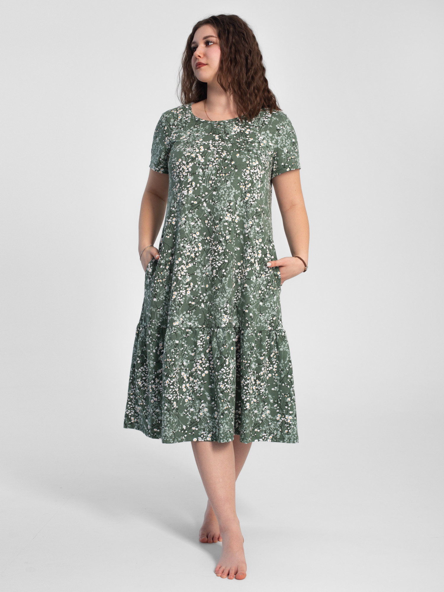 Платье женское кулирка "АГНИЯ" РОМАШКА ЗЕЛЕНЫЙ