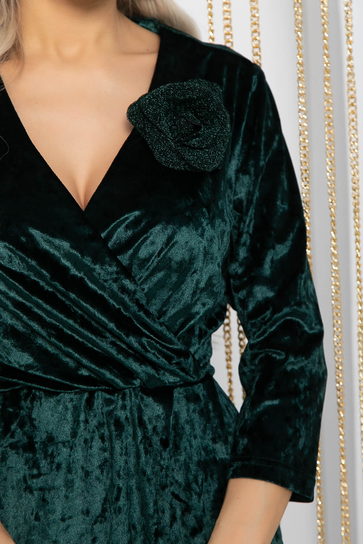 Почувствуйте себя королевой в этом потрясающем платье, которое объединяет в себе изысканность и комфорт. Лиф платья выполнен на запах, что подчеркивает фигуру и создает элегантный силуэт. Идеальный выбор для любого торжества, это платье станет настоящим украшением вашего гардероба! Поясок из велюра в цвет платья акцентирует внимание на талии, добавляя нотку роскоши. Украшение в виде тканевого цветка гармонично дополняет образ, придавая ему шарм и уникальность. К тому же, брошь съёмная, что позволяет использовать её по вашему желанию.
