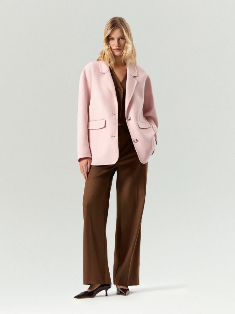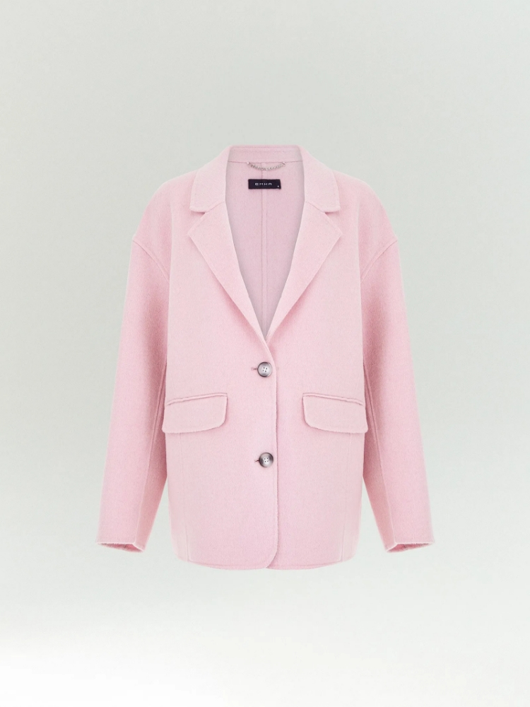 Укороченное пальто-жакет в одном из главных цветов сезона — розовом. Материал более чем на 2/3 состоит из натуральной шерсти высокого качества и выполнен по технологии double-face: благодаря этому он дорого выглядит и отлично держит форму. Соединяли детали и прошивали пальто вручную: премиальное исполнение подтверждает вшивной ярлык hand made на рукаве. Пальто рассчитано на температуры до +5°C. Актуальная модель прямого кроя имеет английский воротник и карманы с клапанами