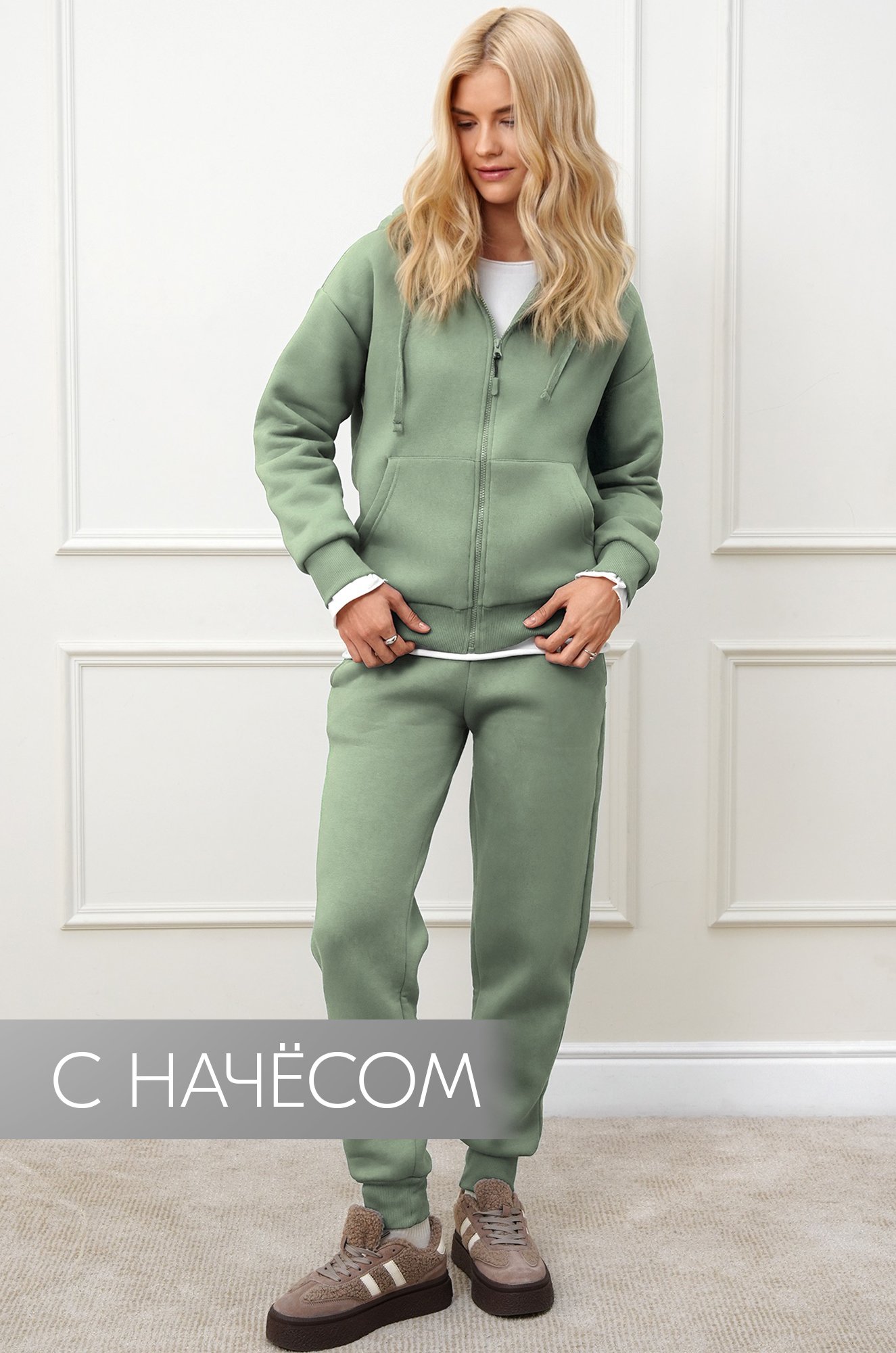 Женский теплый костюм с начесом — стил..показатььное и практичное решение для холодного времени года. В набор входят худи на молнии с капюшоном и удобные брюки-джоггеры.