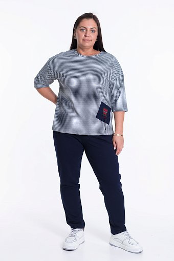 Футболка с круглым вырезом горловины и спущенным рукавом 3/4 обеспечивает комфорт и свободу движений. На левой полочке футболки расположен накладной карман, украшенный нашивкой, что добавляет индивидуальности и стиля.