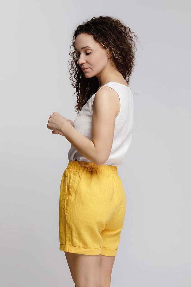 Шорты – это прекрасная альтернатива юбке и брюкам в жаркий период. Этот вид одежды способствует подвижному и динамичному образу жизни, избавляя от неловких моментов, которые могут возникнуть при ношении юбки. И вместе с тем, дарит желанную прохладу, которой не могут похвастаться брюки. Обратите внимание на представленную модель льняных шорт! Простые и непритязательные по дизайну. Но такие удобные и комфортные для лета! Отсутствие классической застёжки молнии избавит вас от монотонного процесса одевания. Эластичный пояс – резинка – помогает быстро надеть и снять изделие. Карманы в боковых швах – как неотъемлемый атрибут поясного изделия. Декоративная строчка крепит подкладку, что создаёт не только эстетичный внешний вид, но и удобство. Яркая цветовая гамма изделия поможет подчеркнуть позитивный настрой на летний отдых.