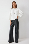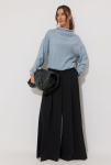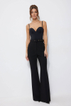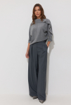 Комбинезон 3766 3600 44-54 Стильный комбинезон полуприлегающего силуэта с расширенными книзу брюками из вискозной ткани. Горловина округлая. Брюки прямого силуэта со складками по переду и наклонными карманами. Лиф прямого кроя со сборкой по низу. По переду и спинке складки выходящие из плечевого шва. Плечо расширено, предусмотрены плечевые накладки. Лиф соединен с брюками притачным поясом с резинкой на уровне бокового шва и шлевками для ремня. По среднему шву спинки от горловины потайная молния. "Длина изделия: (44-48р – 163см); (50-54р - 164см)