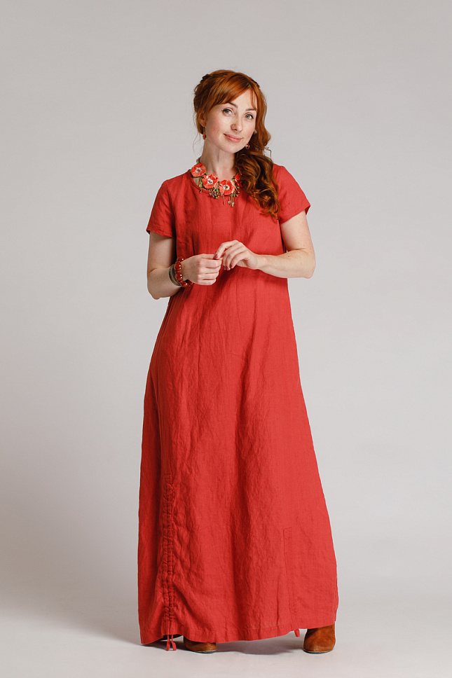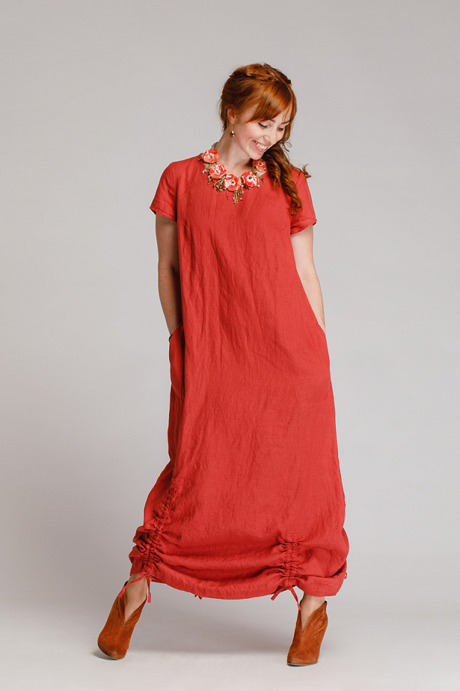 Воздушное платье с кулисами снизу – тренд этого года. Платье создано с вниманием к деталям: наша модель из льна будет незаменима для вас в самую теплую и ветреную погоду. Лён, ввиду своих свойств, идеально защитит вас от жары, а кулисы при любом дуновении ветра оставят фасон платья неизменным.