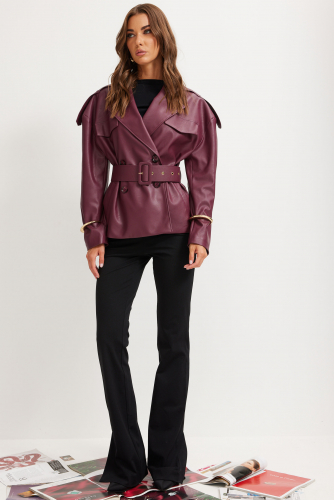 Жакет 4155(бордо) 3825 44-54 Жакет прямого силуэта из экокожи. Воротник пиджачного типа с двубортной застежкой на петли и пуговицы. Плечо расширенное. Рукав двухшовный длинный, на плече декоративная пата. По переду декоративные клапаны, функциональные карманы с листочками. Жакет на подкладке. В комплект входит ремень. Обращаем ваше внимание, что фурнитура может отличаться от фото. "Длина жакета (44-48р - 62см),(50-54р - 65см)