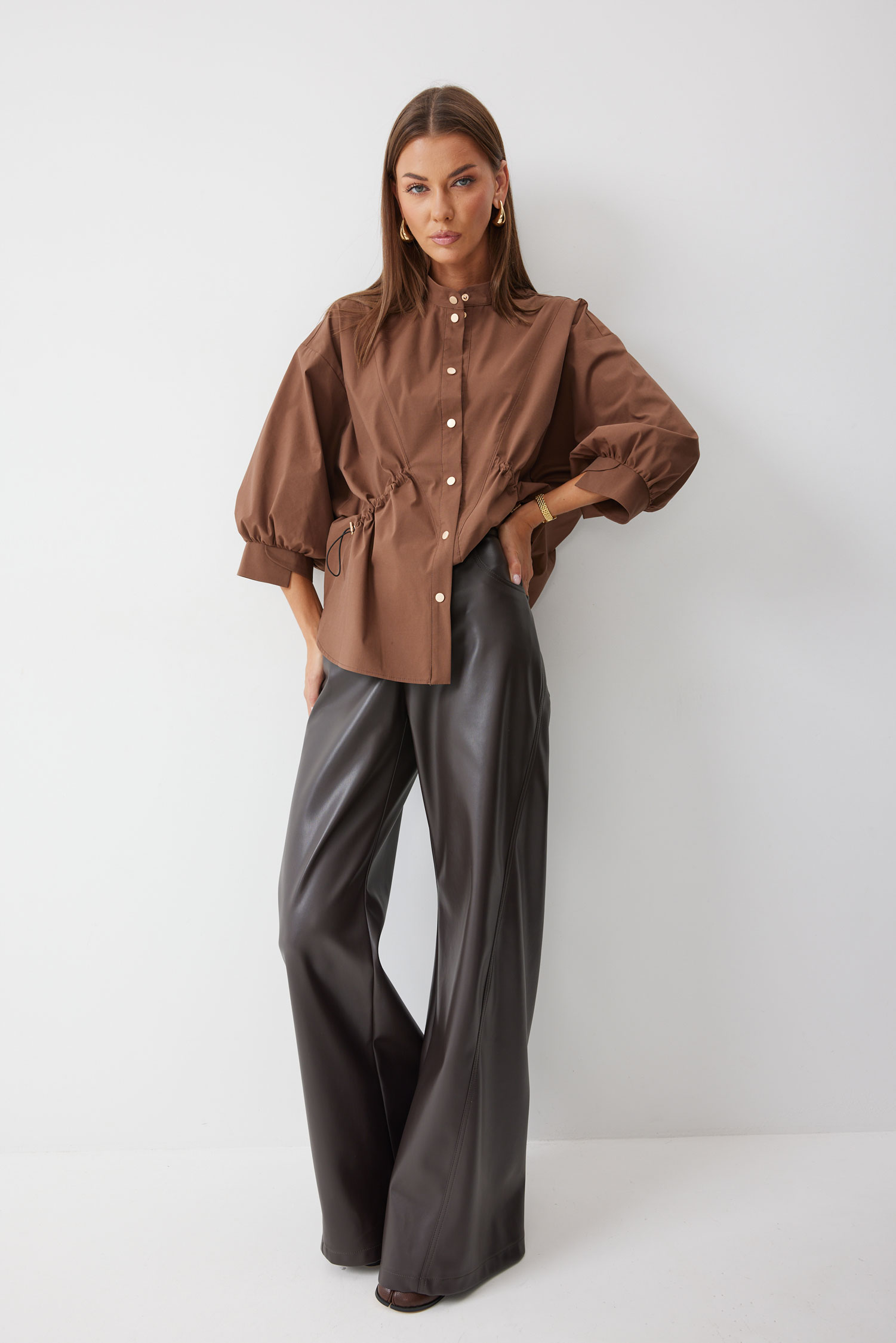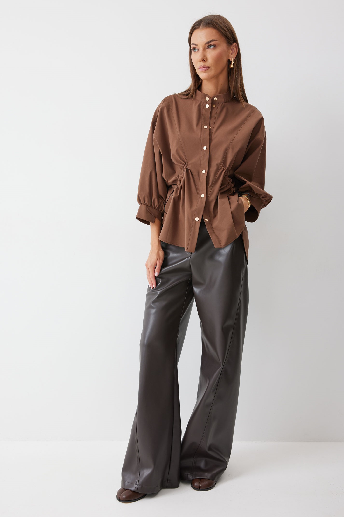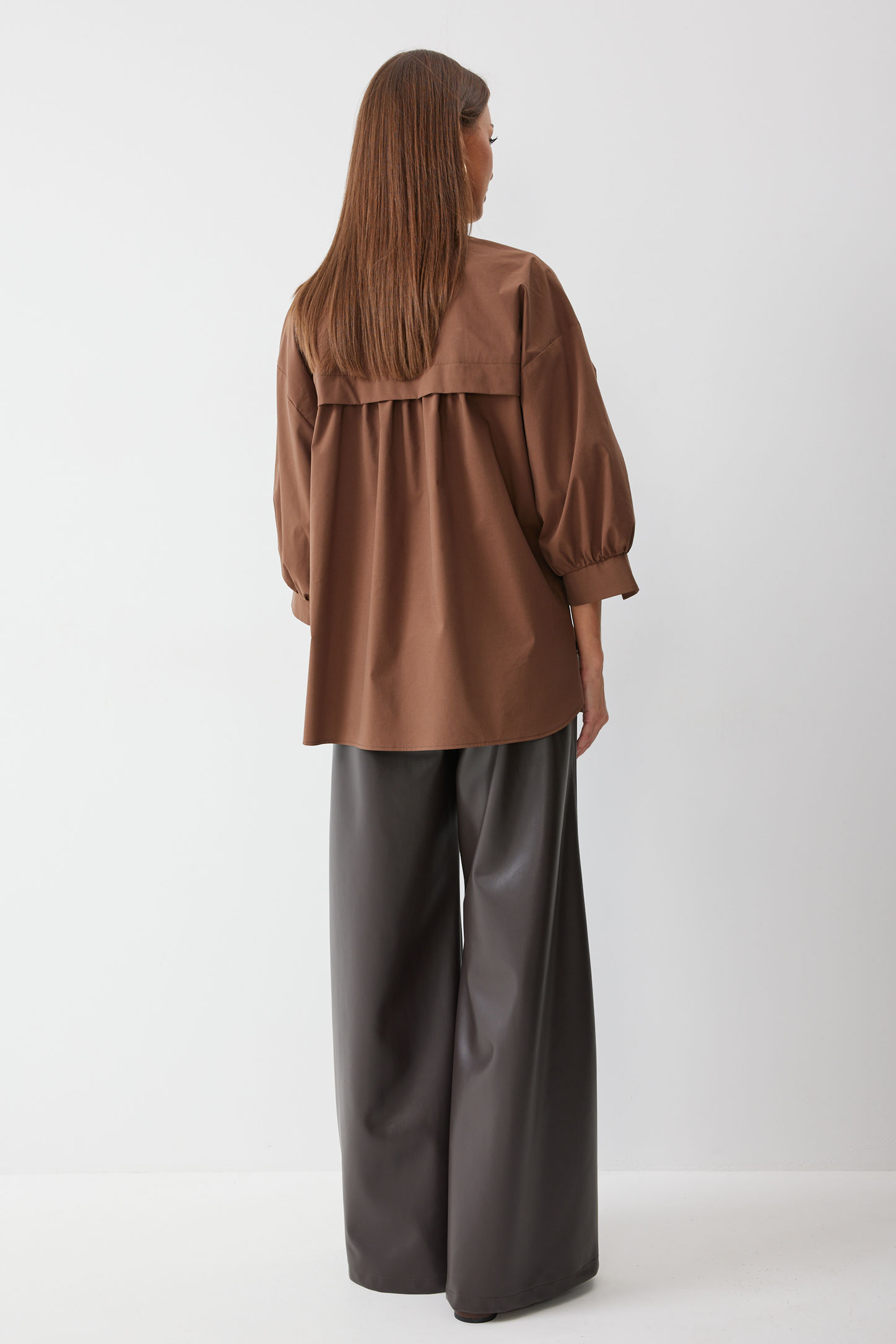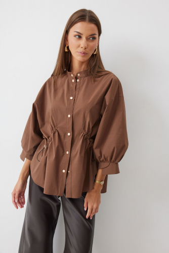 Блузка 4194 (коричневый) 2890 44-60 Блузка прямого силуэта из хлопковой ткани с фигурным низом. Воротник –стойка, по центру застежка на кнопки. Рукав спущенный с заниженной проймой, по низу рукава сборка и декоративная манжета. По переду декоративная кулиса с фиксаторами для регулирования степени прилегания изделия. На спинке кокетка и сборка по центру. Обращаем ваше внимание, что фурнитура может отличаться от фото. "Длина (44-48р - 72см),(50-60р - 77см)