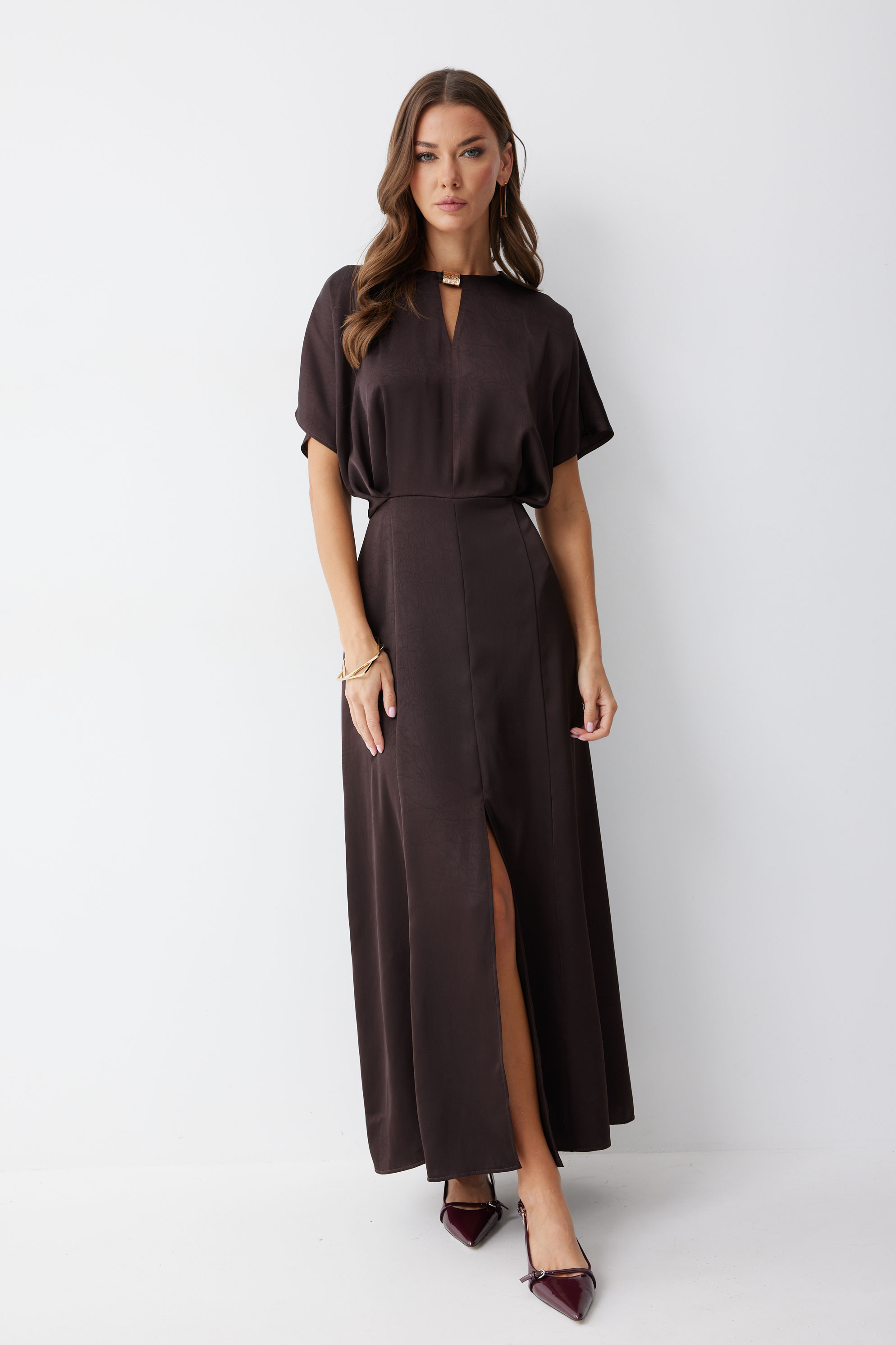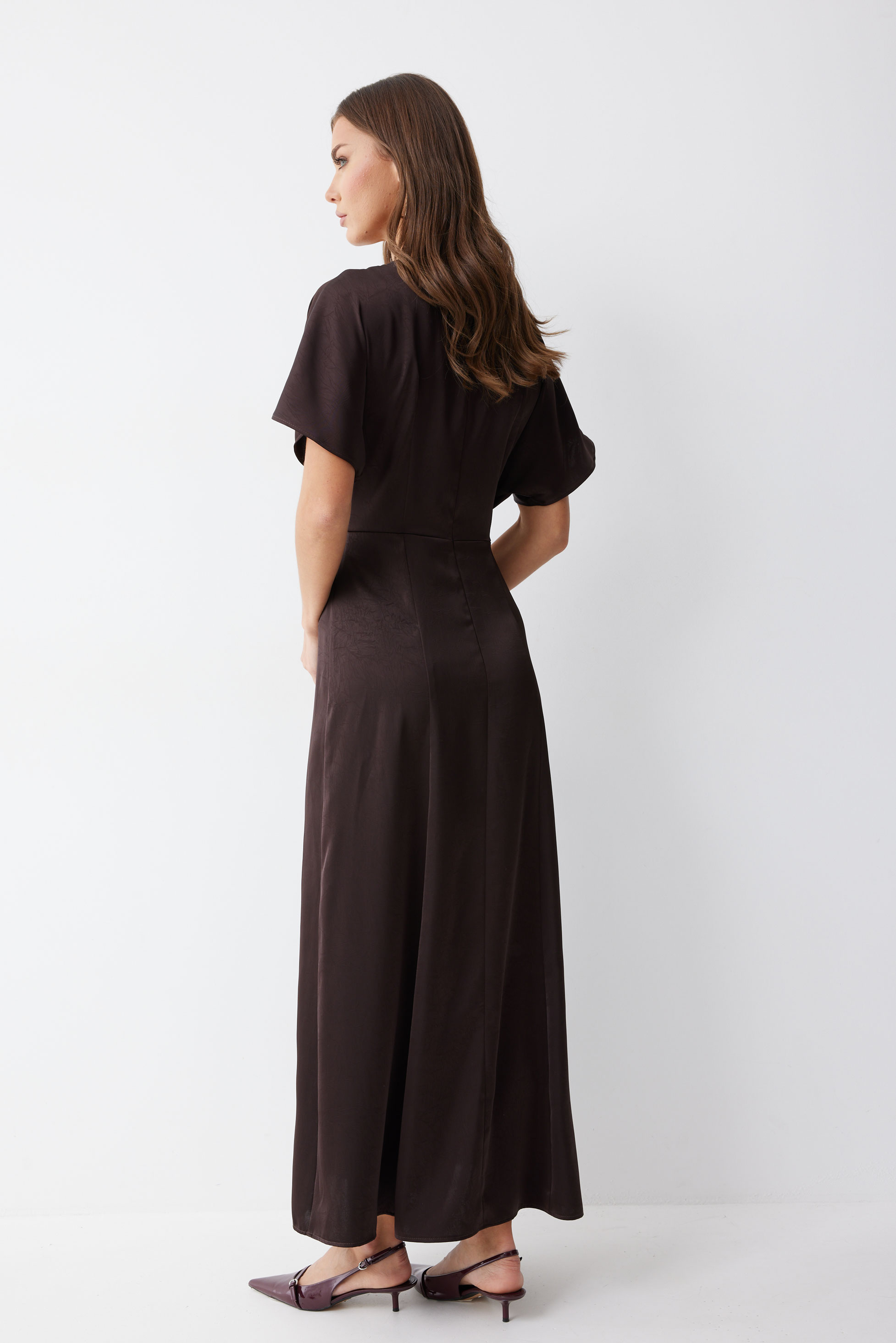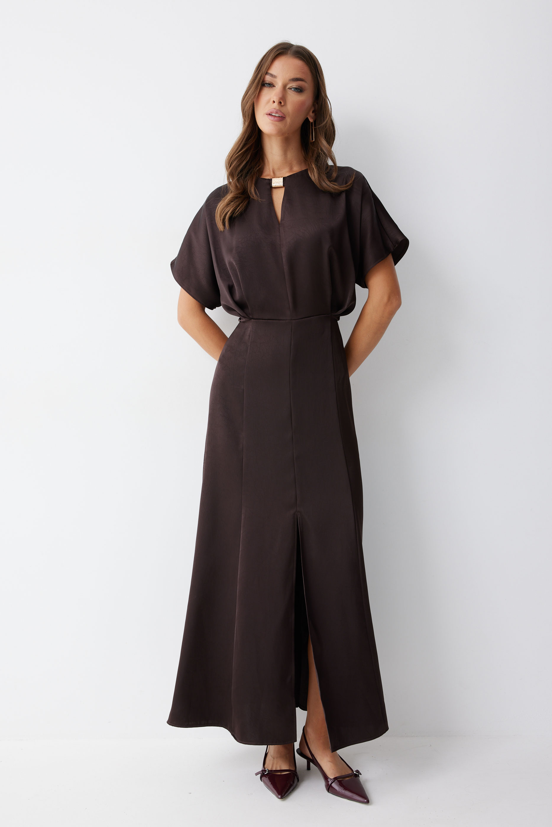 Платье 4210 (коричневый) 2805 44-54 Нарядное платье из струящейся ткани длины макси. Рукав цельнокроеный. Платье отрезное по линии талии, на полочке заложены складки. Горловина округлая, с декоративно протяжкой по центру. По спинке средний шов с застежкой на потайную молнию. Юбка расширенна книзу от бедра. Обращаем ваше внимание, что фурнитура может незначительно отличаться от фото. "Длина платья 137см