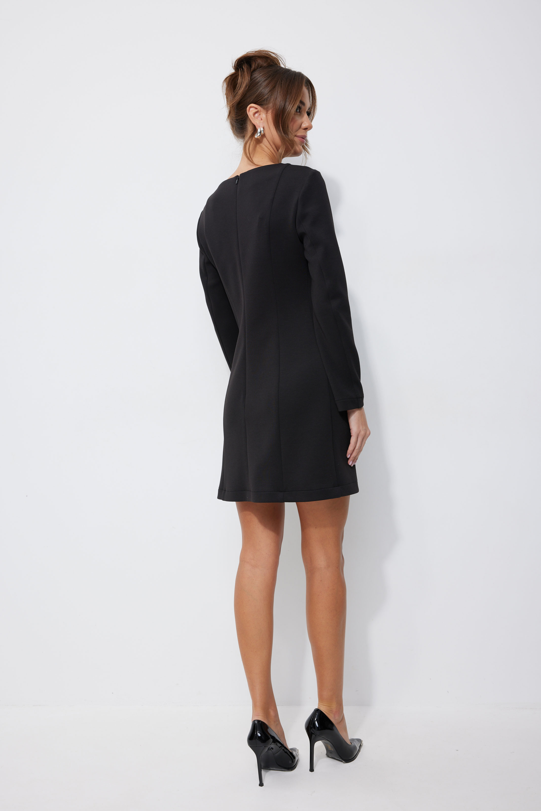 Платье 4246 3145 44-54 Нарядное платье из трикотажного полотна, длина мини. Платье прилегающего силуэта с небольшим расширением по низу. С рельефами по переду и спинке. По переду слева вдоль рельефа пришивной декор «цветы». По переду слева рельеф с разрезом по низу. Рукав втачной, длинный. Вырез горловины «лодочка». Потайная молния в среднем шве спинки. Обращаем Ваше внимание, что декор может незначительно отличаться от фото. "Длина платья (44-48р 82 см) (50-54р 92 см).