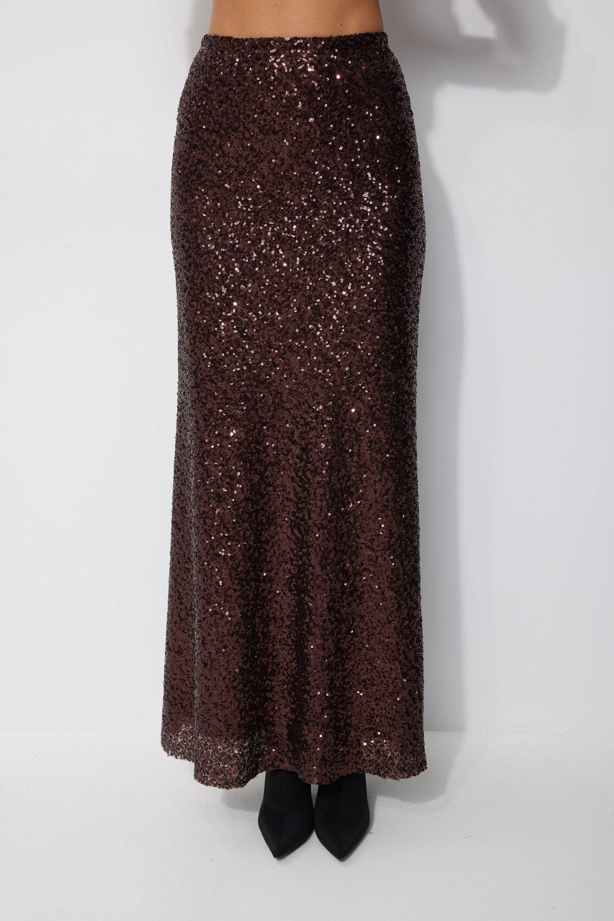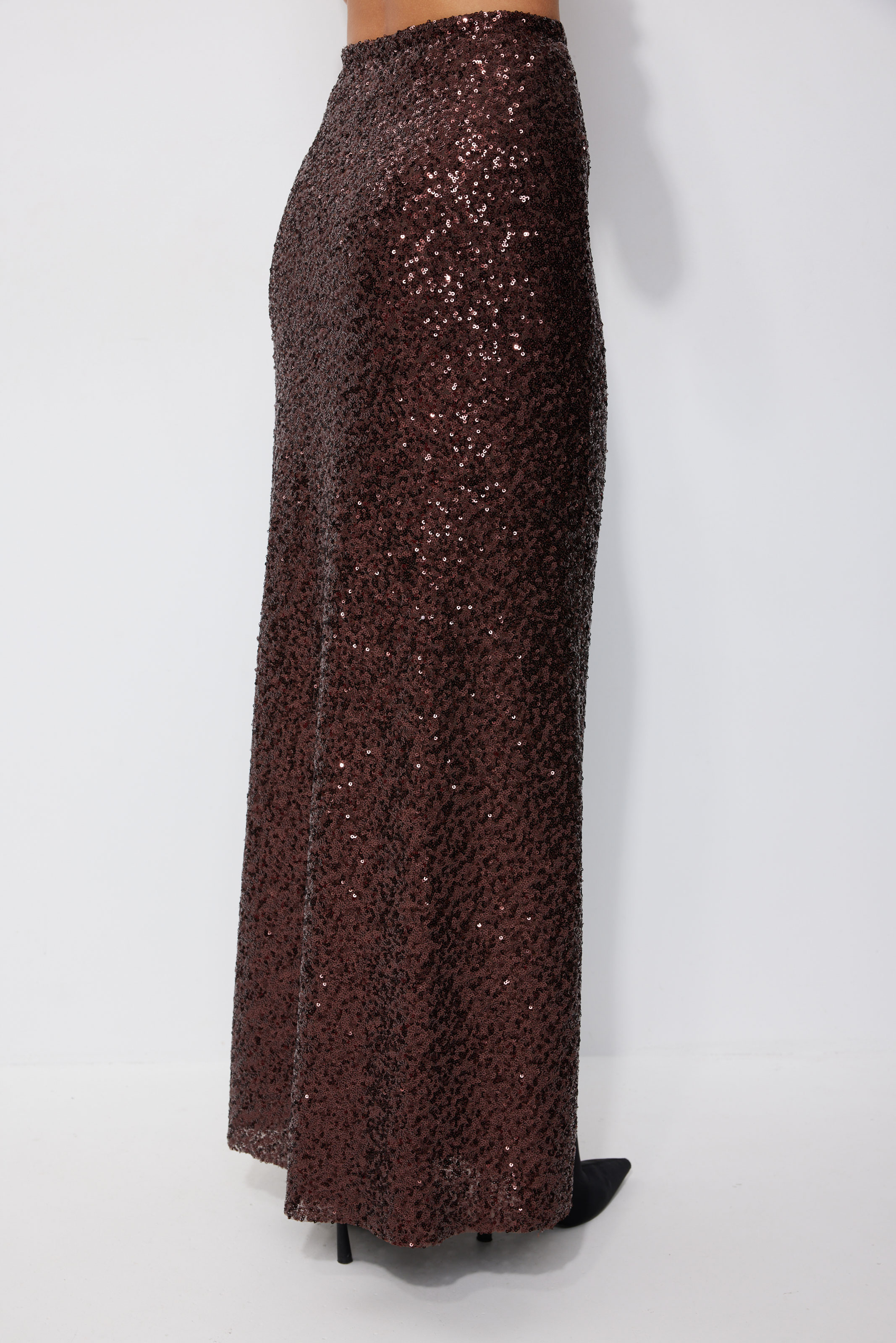 Юбка 4257 (коричневый) 3400 44-54 Юбка полуприлегающего силуэта расширенная книзу длиной макси из ткани с пайеткой. Юбка с резинкой по линии талии. Юбка на подкладке. Длина юбка 100 см (±3см.)