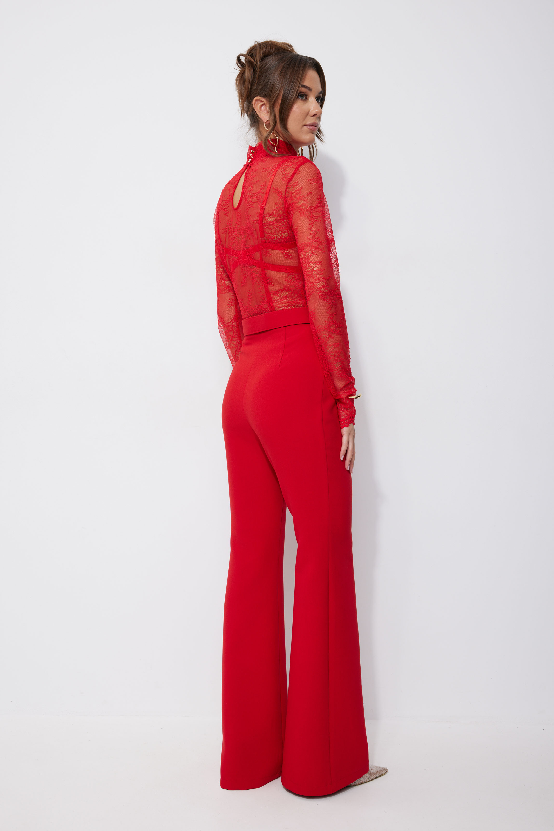 Джемпер 4258 (красный) 2040 44-54 Блузка полуприлегающего силуэта из кружева. Горловина –стойка, на спинке застежка на петли и пуговицы и фигурный вырез. Рукав втачной. На спинке талиевые вытачки. Обращаем ваше внимание, что фурнитура может отличаться от фото. "Длина блузки (44-48р - 58см)(50-54р - 61см)