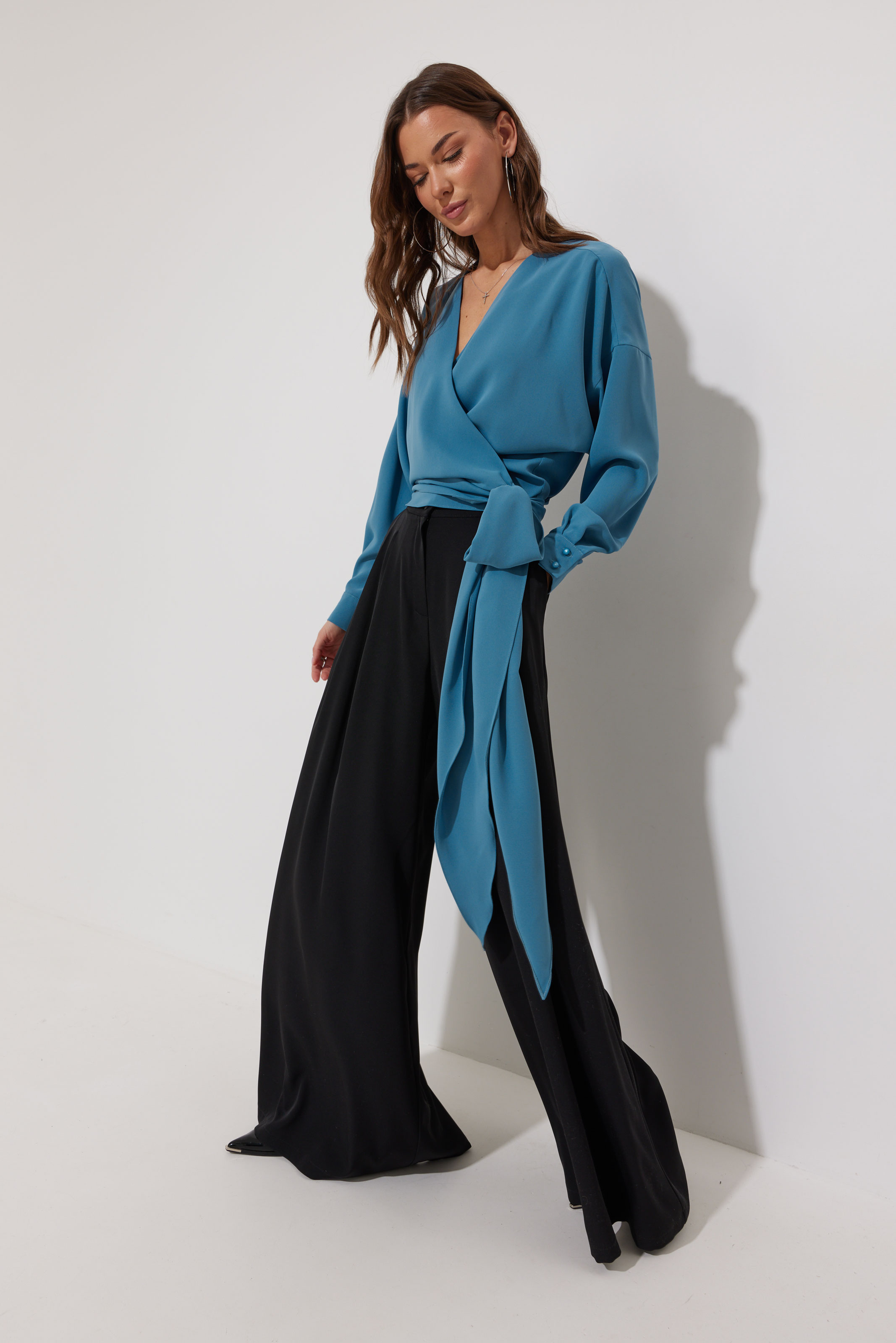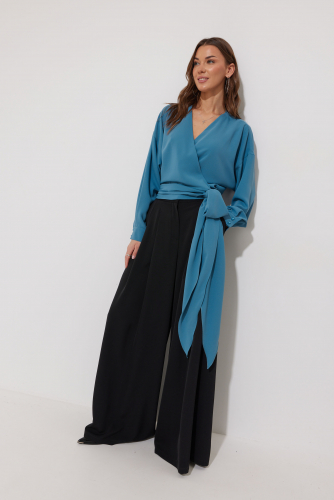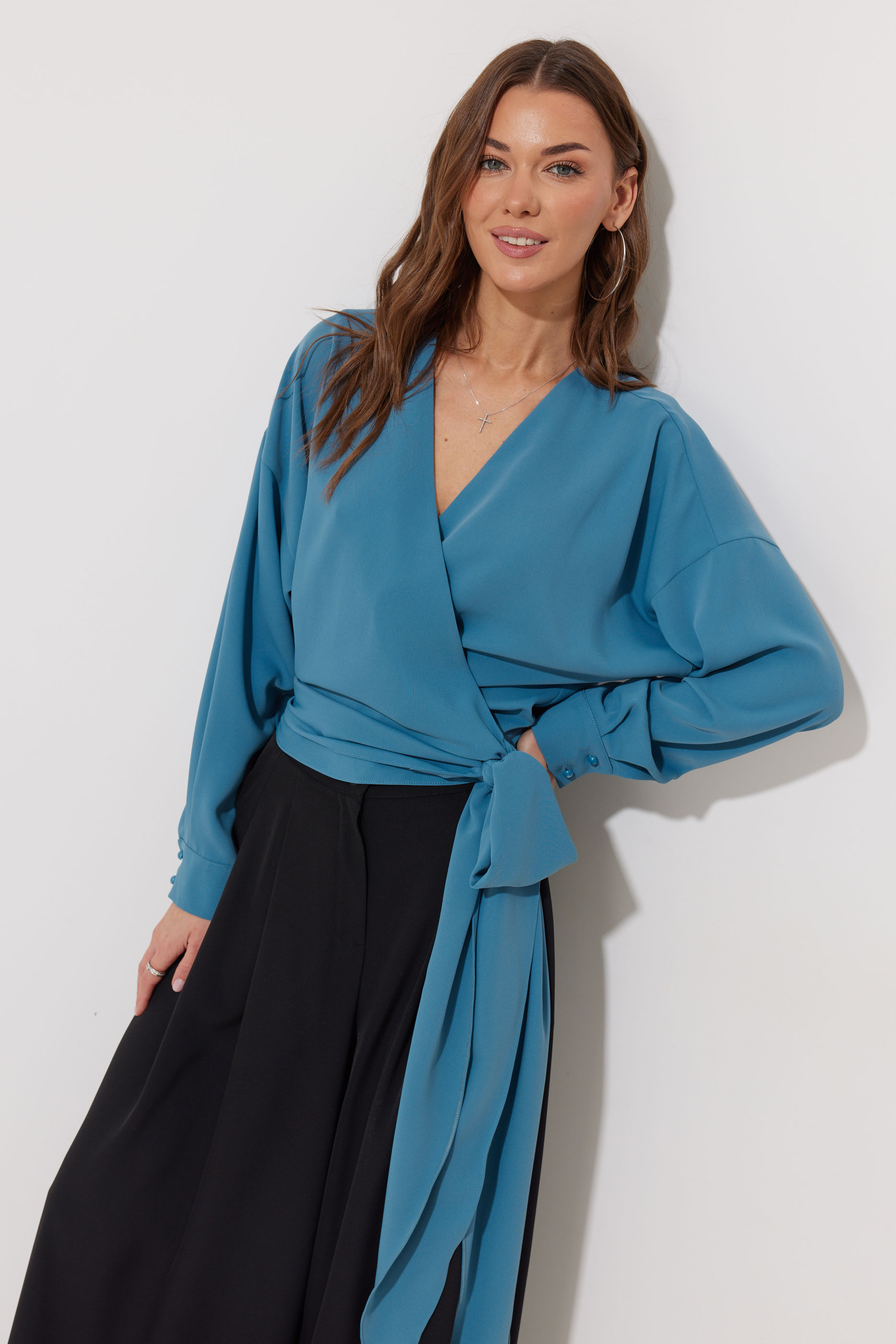 Блуза 4276 (голубой) 3060 44-54 Блузка на запах из струящейся ткани, прямого, слегка расширенного силуэта. Застежка на объемные бант-завязки на боку. Рукав цельнокроеный отрезной, с манжетой с застежкой на петли-пуговицы. Обращаем Ваше внимание, что фурнитура может незначительно отличаться от фото. "Длина блузки (44-48р 53 см) (50-54р 57 см).
