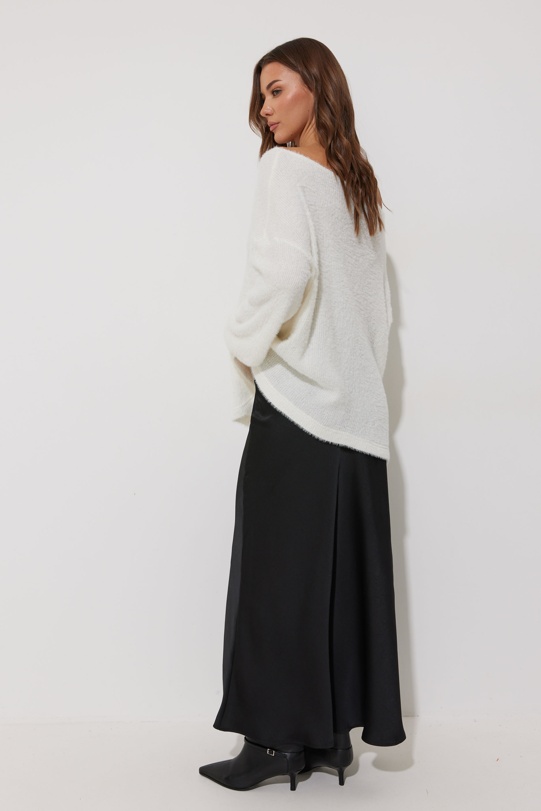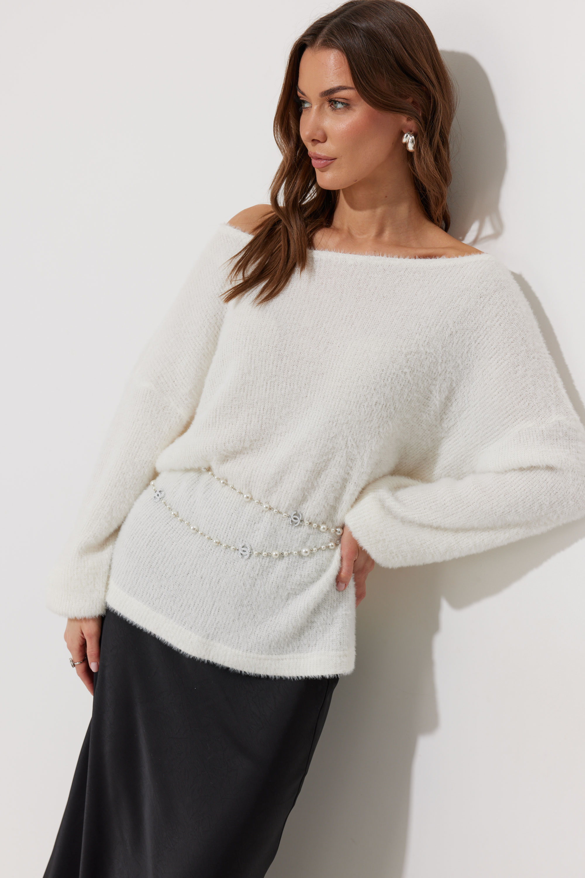 Джемпер 4284 2040 (44-48) Джемпер прямого силуэта из трикотажного полотна. Горловина-лодочка. Рукав со спущенной линией плеча длинный, по низу резинка. "Длина джемпера 61см