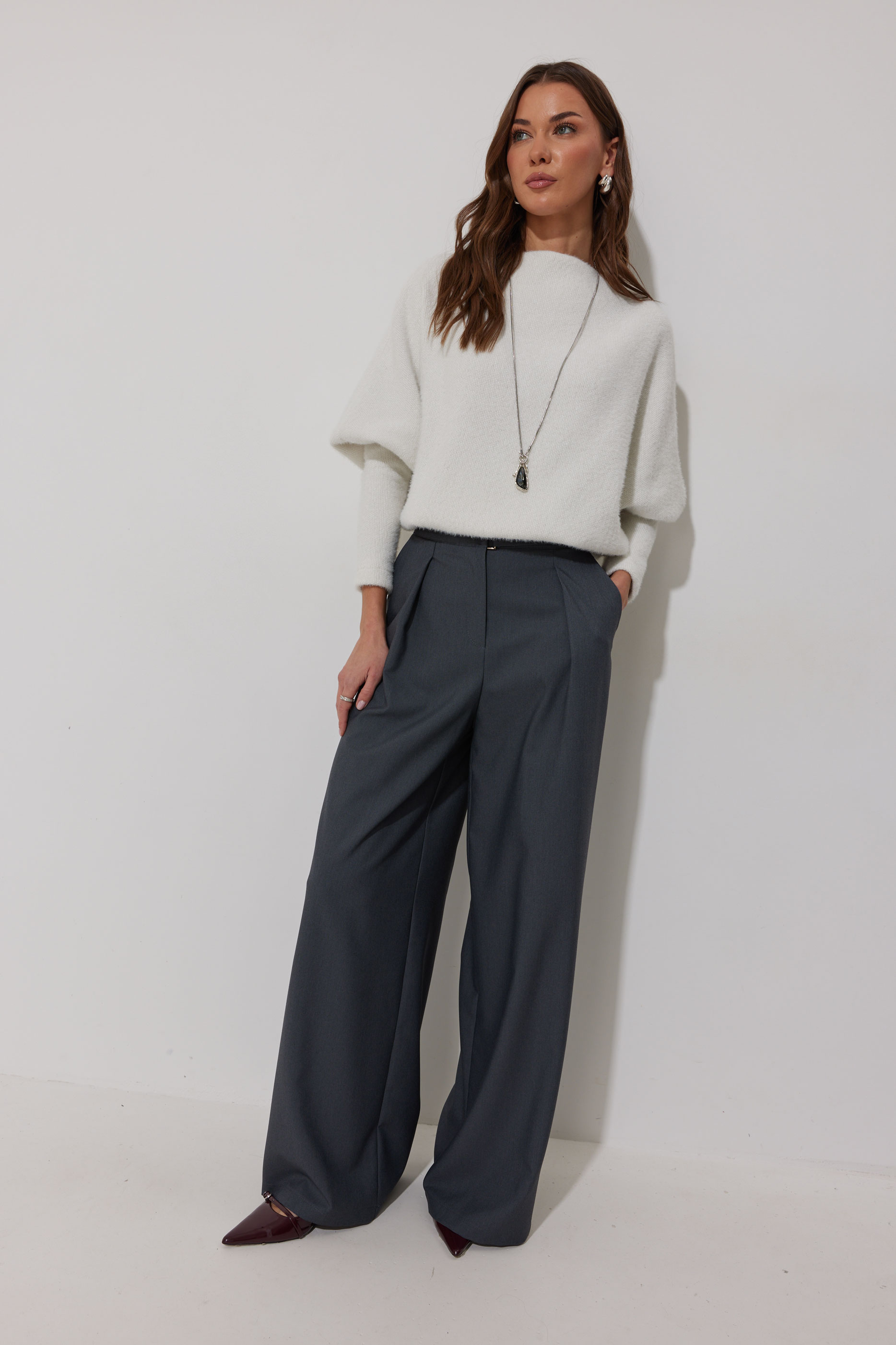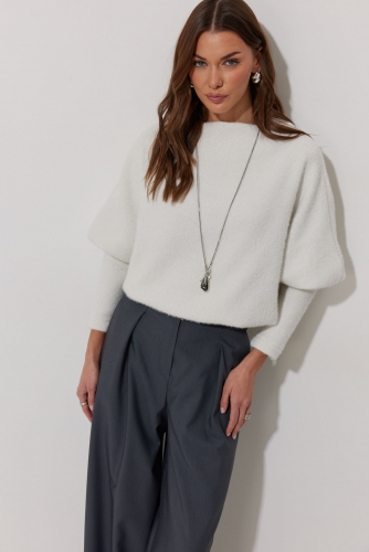 Джемпер 4288 2465 44-54 Джемпер полуприлегающего силуэта из трикотажного полотна. Горловина - цельнокроеная стойка. Рукав цельнокроеный, с подрезом ниже локтя и узкой длинной манжетой. По низу джемпера – притачная планка. "Длина джемпер (44-48р – 61см)(50-54р – 69см)