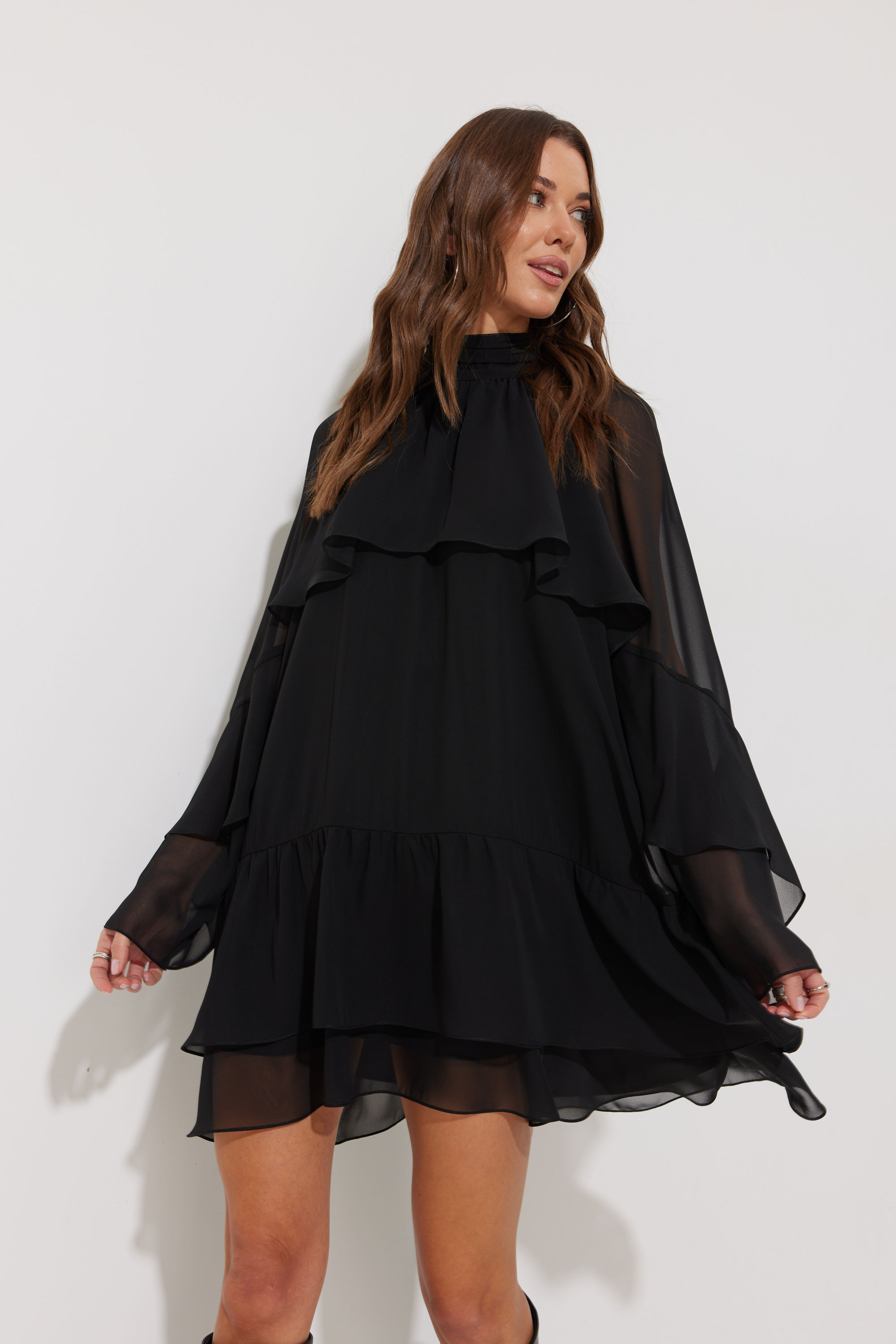 Платье 4292 3060 44-48 Платье из шифона. Длина мини. Платье расширенного А-силуэта. Воротник-стойка с застежкой по спинке на воздушные петли и металлические пуговицы на ножке. По переду и спинке отлетные кокетки фигурной формы, со сборкой по срезу горловины. По спинке в среднем шве потайная молния. По низу платья два волана со сборкой по верхнему срезу. Рукав реглан, длинный, со сборкой по горловине. По рукаву по спирали вставлен волан. Платье на подкладке. Обращаем Ваше внимание, что фурнитура может незначительно отличаться от фото. "Длина платья во всех размерах 84 см.