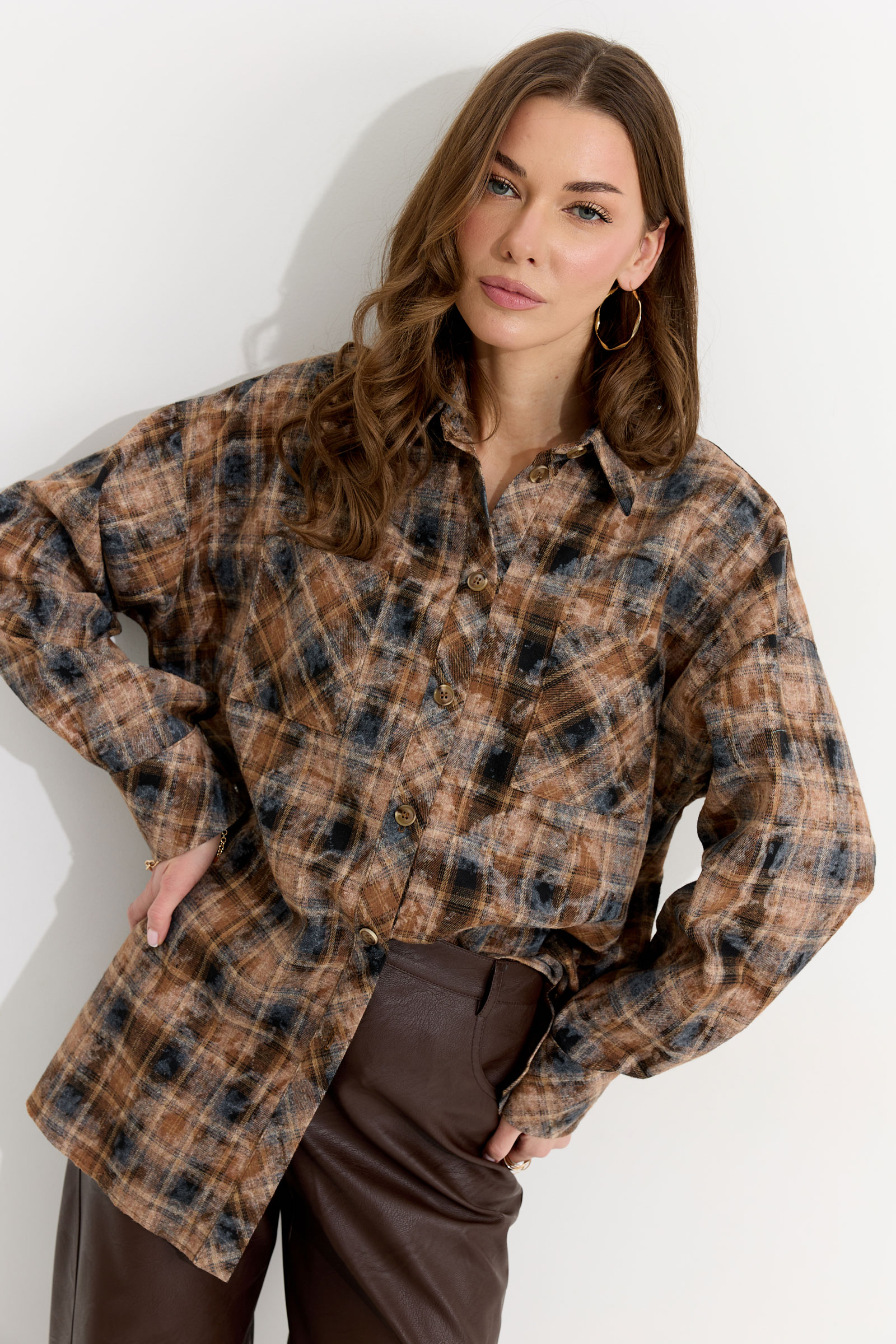 Блузка 4303 (коричневый) 2550,00 44-60 Блузка прямого силуэта из плательно-костюмной ткани с фигурным низом. Воротник стояче-отложной с отрезной стойкой, по центру застежка на петли и пуговицы. Рукав со спущенной линией плеча, по низу манжета с застежкой на петли и пуговицы. По переду накладные карманы. На спинке кокетка со складками. Обращаем ваше внимание, что фурнитура может отличаться от фото. "Длина блузки (44-48р – 79см)(50-54р - 79см)(54-60р - 81см)