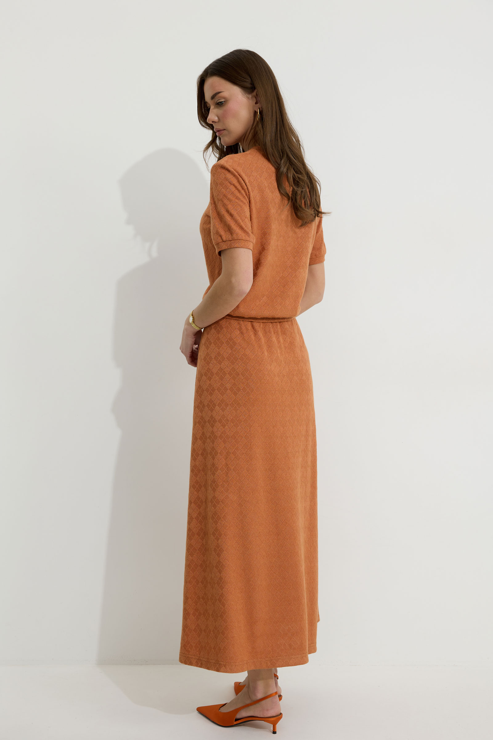 Юбка А-силуэта расширенная книзу из трикотажного полотна. По верху юбки притачной пояс с эластичной тесьмой (резинкой).