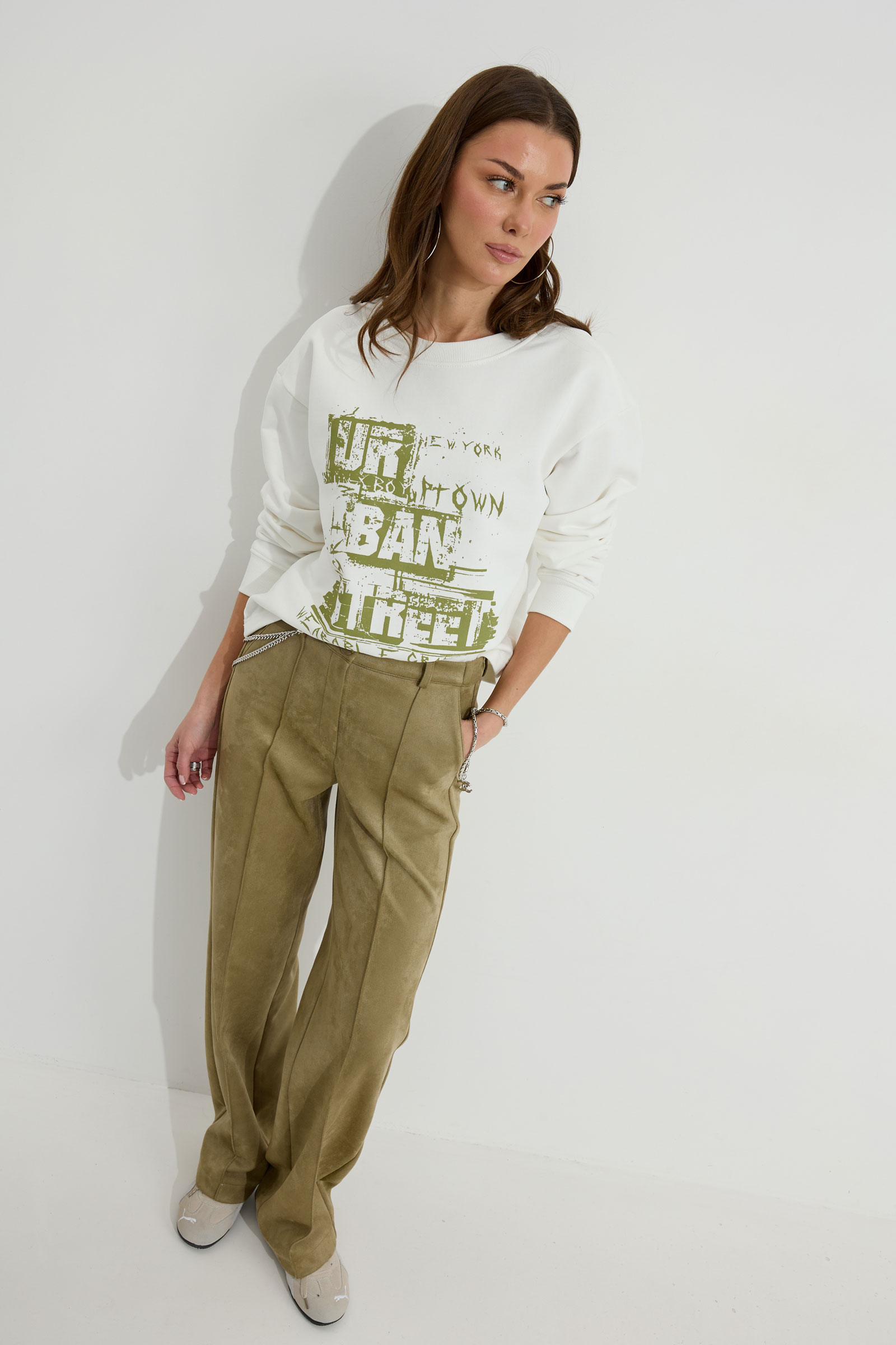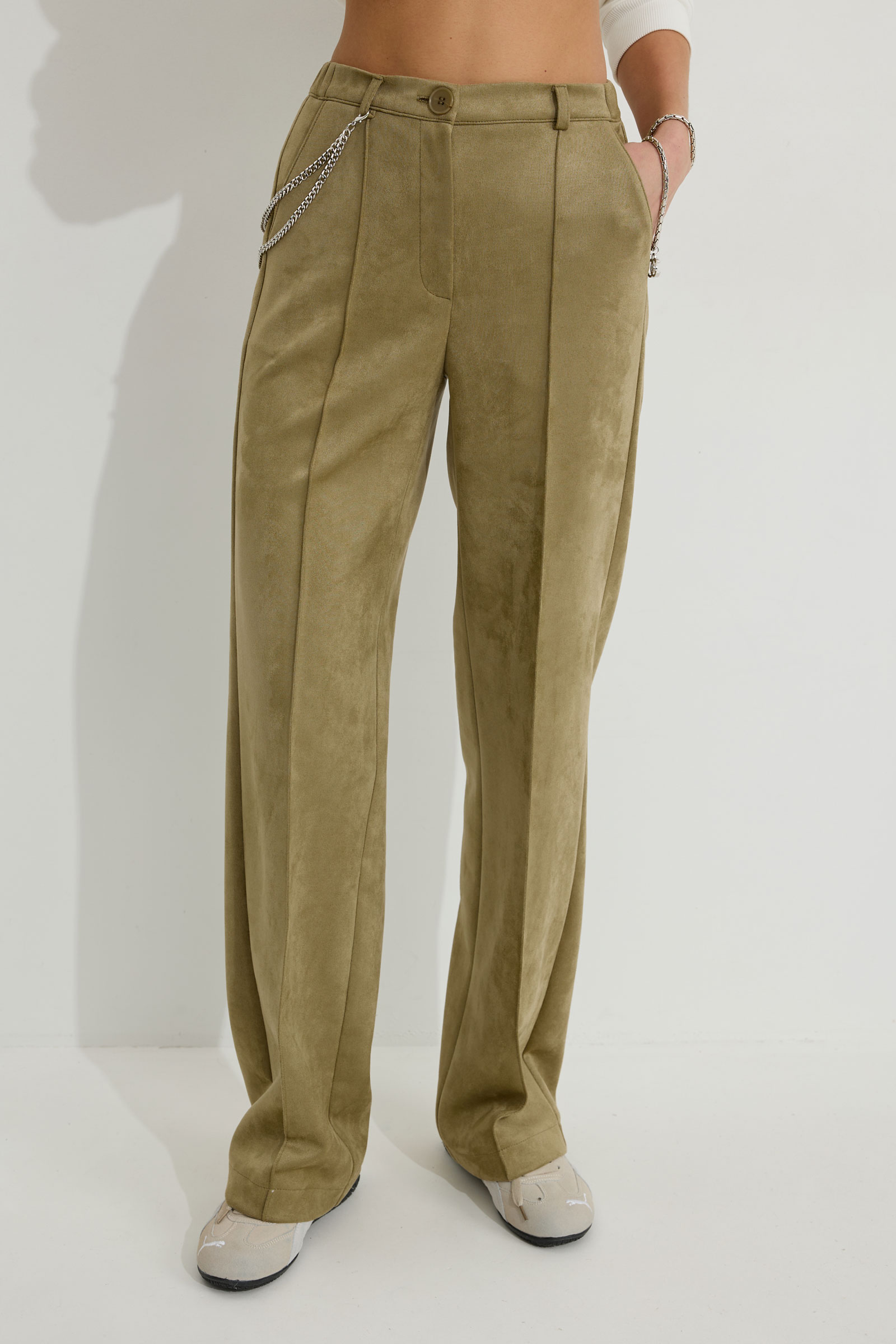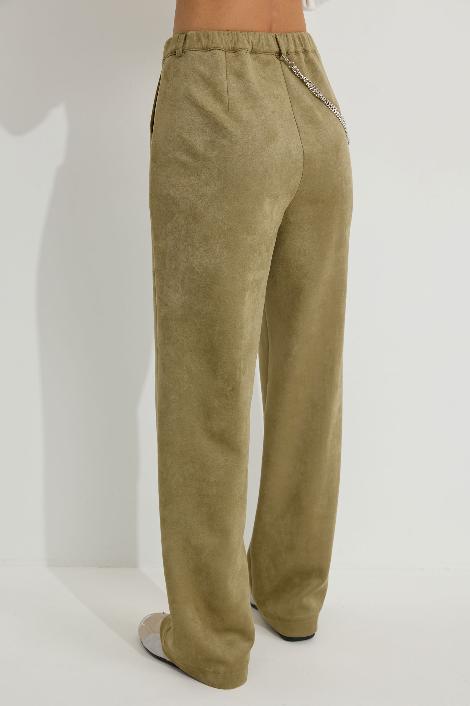 Брюки 4314 (оливка) 2550,00 44-54 Брюки прямого силуэта из трикотажного полотна “замша”. По верху притачной пояс с застежкой на петлю и пуговицу и шлевками для ремня. На передних половинках обработаны карманы, канты и застежка молния в среднем шве, на задних – вытачки. По поясу задних половинок брюк эластичная тесьма (резинка). Обращаем ваше внимание, что фурнитура может отличаться от фото. Декоративный элемент - цепочка в комплектацию не входит. Длина брюк (44-48р – 109+3,5см пояс)(50-54р - 110+3,5см пояс)