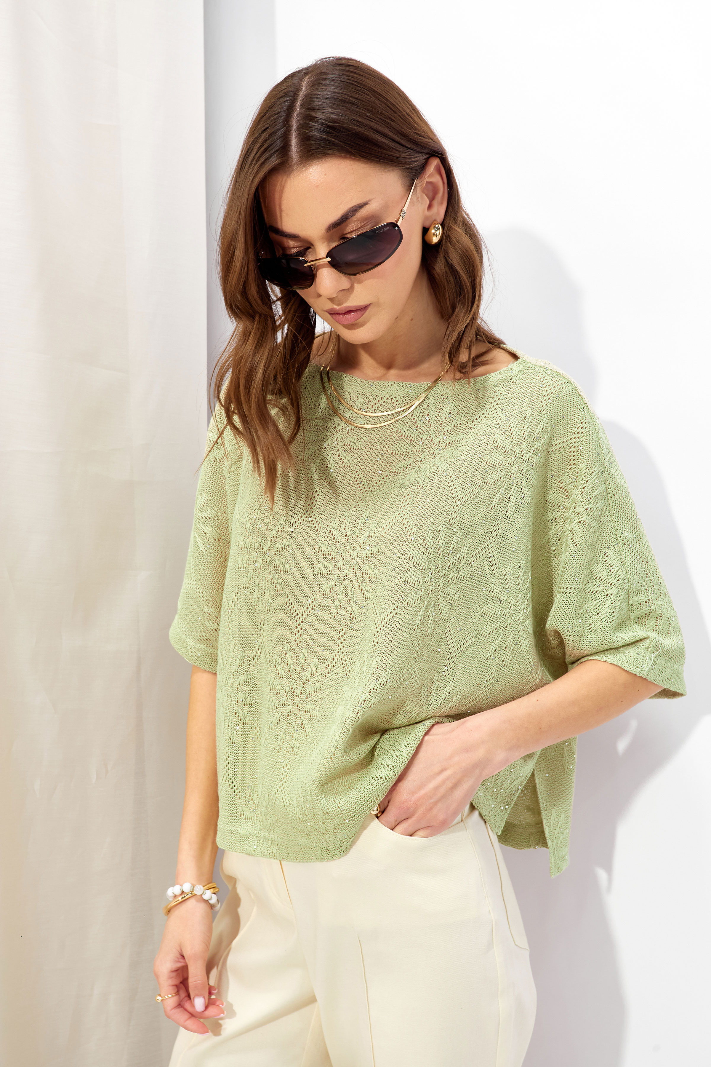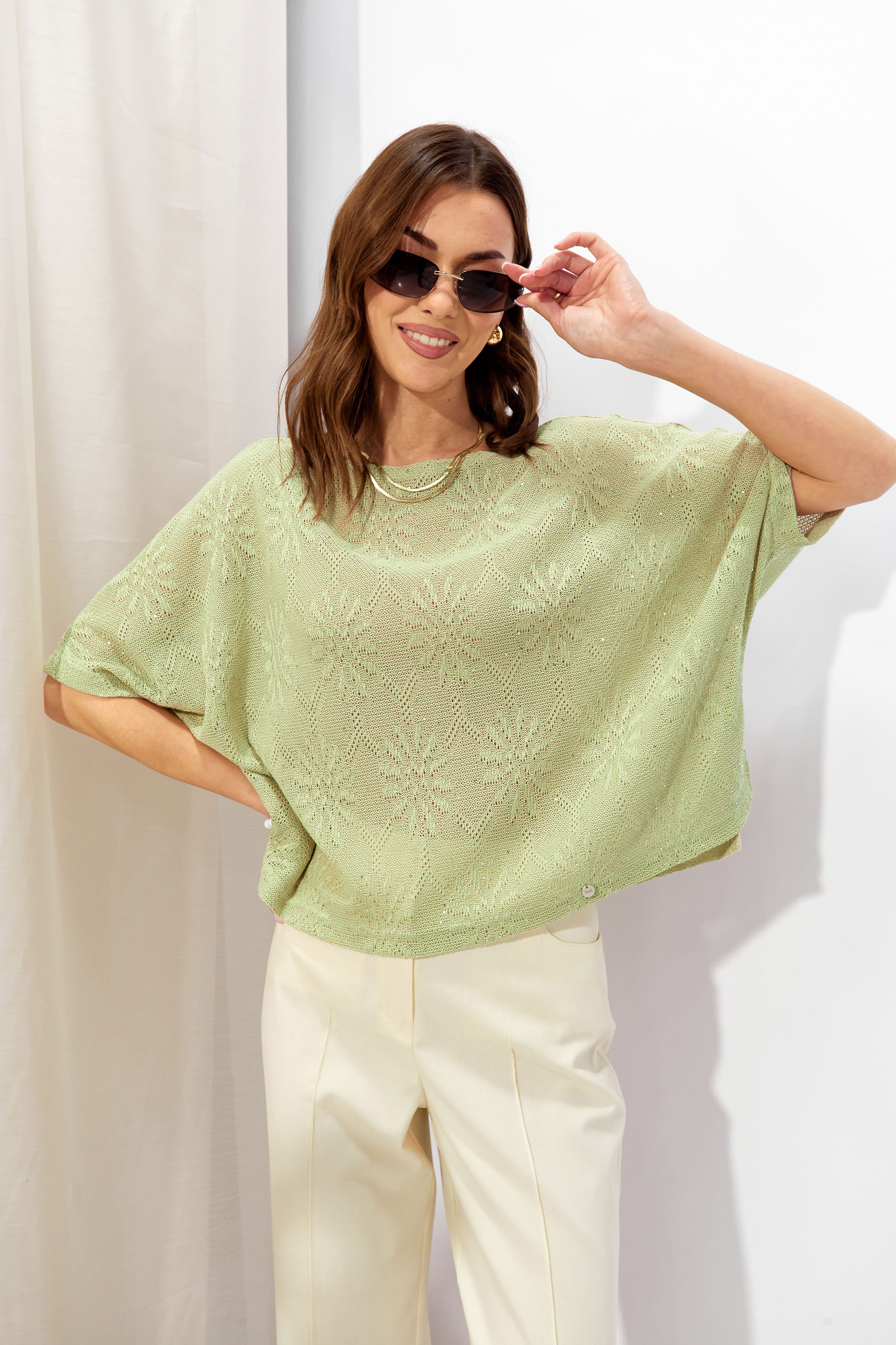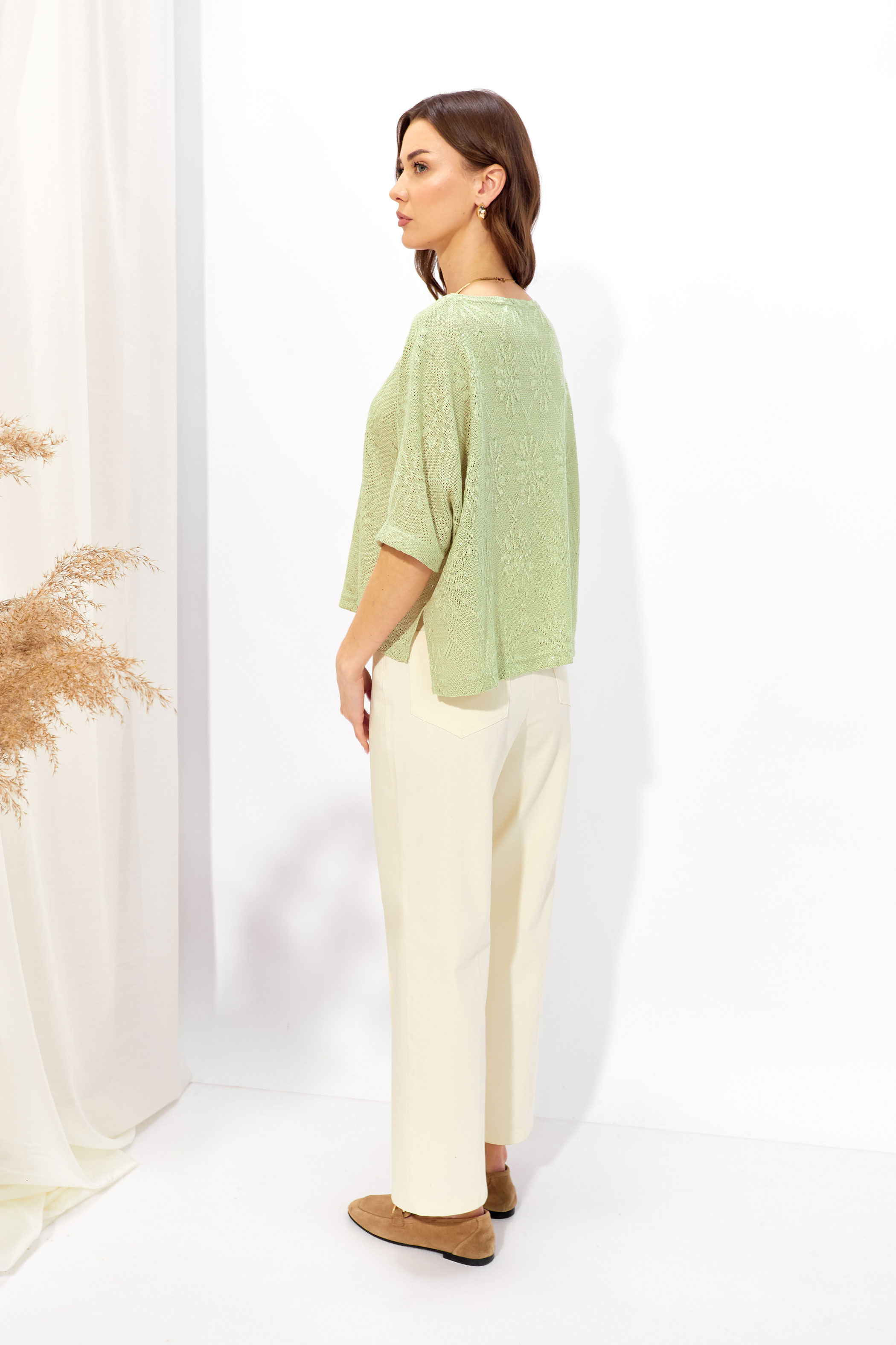 Джемпер 4353 2160 44-60 Джемпер покроя “летучая мышь” слегка зауженный книзу из трикотажного полотна. Горловина-лодочка. По низу джемпера в боковых швах разрезы, спинка длиннее переда. "Длина (44-48р - 54см)(50-56р – 62см)(56-60р - 70см)