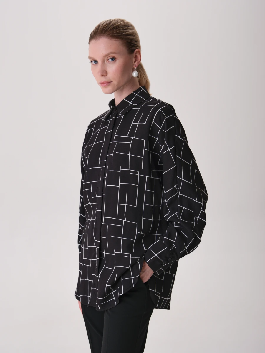 Oversize блуза с принтом Темно-серый 50.179.9176.603.1