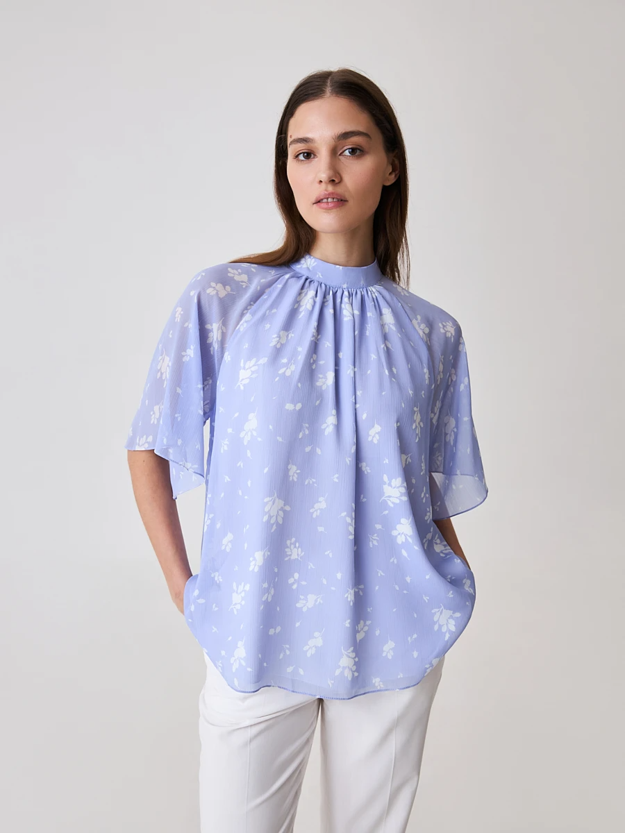 Шифоновая блузка с принтом Голубой 50.372.2779.640.1