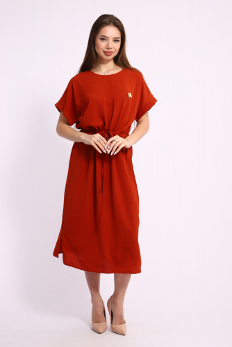 Женское летнее платье прямого силуэта. Данная модель с округлой горловиной, рукав чуть выше локтя, декорирован планкой с пуговицей, легкое и удлиненное, имеется разрез сбоку снизу.