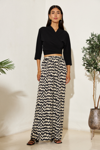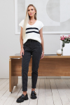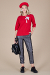 Брюки из меланжевой костюмной ткани, зауженные книзу с отворотами. В боковых швах выполнены карманы. На правом бедре накладной карман с клапаном. Притачной пояс со шлёвками. Застёжка на молнию-гульфик и пуговицу. Секрет такой модели кроется в безупречно точной посадке по талии и бедрам – ничего лишнего, только конструктивные детали, которые придают четкость линиям силуэта.