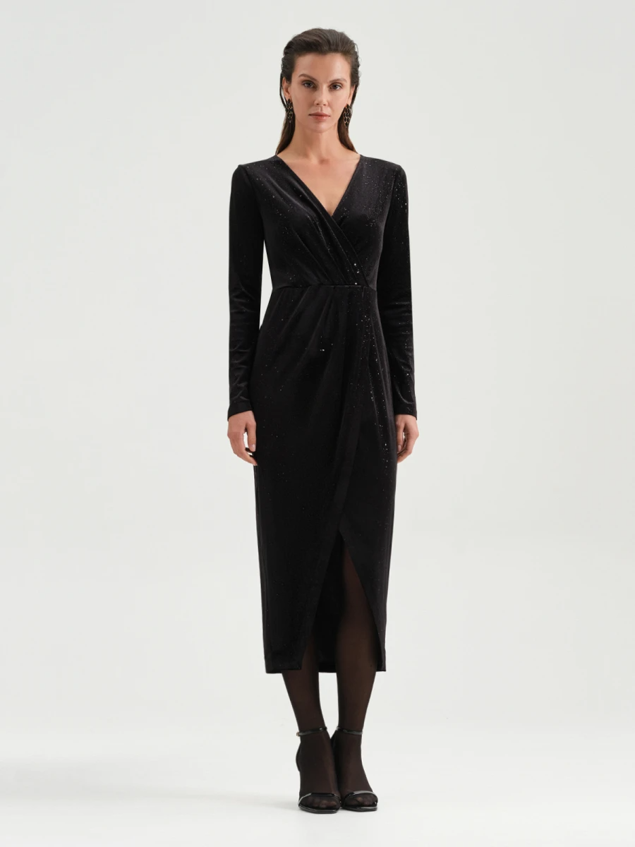 Платье миди с разрезом Черный 64.400.3452.701.1