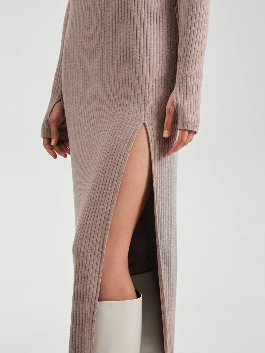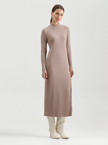Трикотажное платье с разрезом Бежевый 64.977.6232.396.1