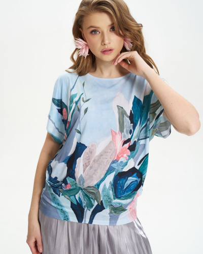 Блузка из шифона с акварельным принтом и бархатным бантом