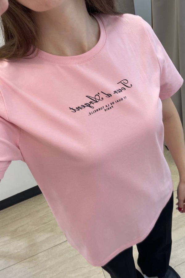 Джемпер из хлопкового эластичного полотна свободного силуэта. Втачной короткий рукав. Круглый вырез горловины оформлен бейкой.