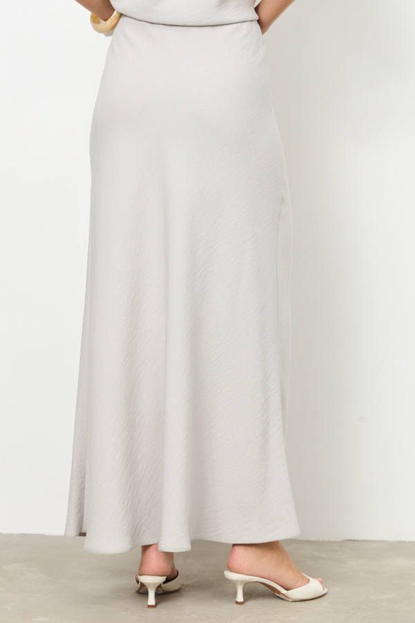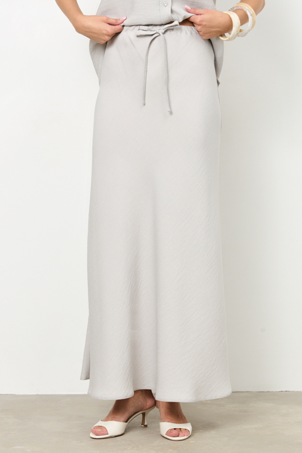 Юбка из вискозной ткани с крэш-эффектом, расширенная книзу. Крой юбки по косой. Пояс с эластичной резиной и кулиской.