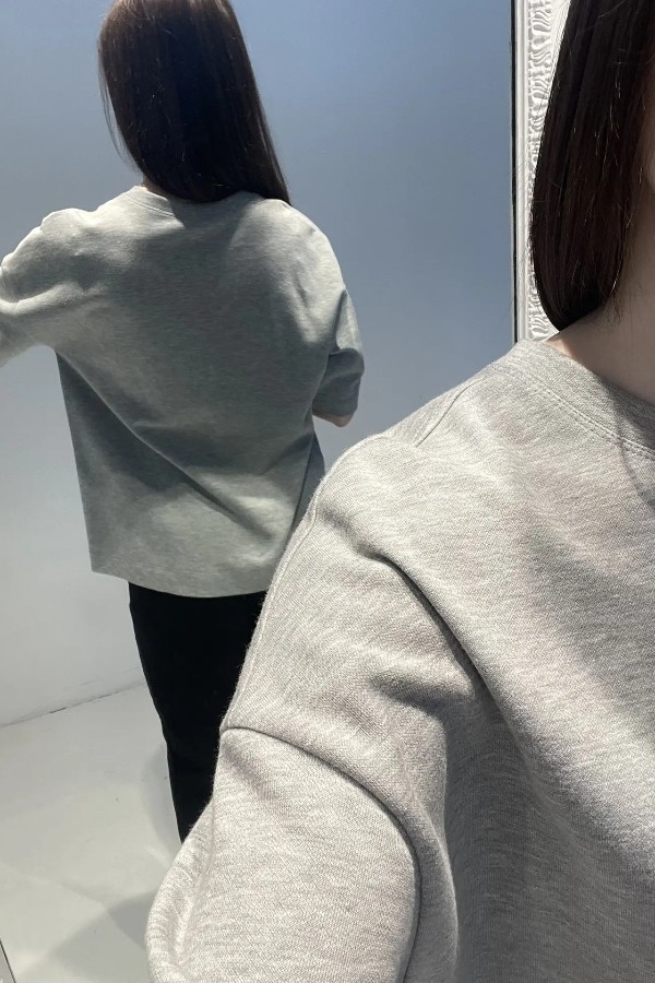 Джемпер из эластичного полотна свободного силуэта. Изделие со спущенной линией плеча и коротким рукавом. Вырез горловины оформлен бейкой из основной ткани. В таблице размеров представлены параметры человека, а не изделия.