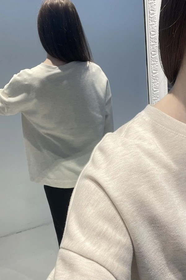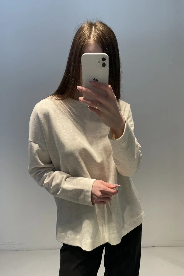 Джемпер из эластичного полотна. Свободный силуэт со спущенной линией плеча и длинным рукавом. Вырез горловины оформлен бейкой из основной ткани. В таблице размеров представлены параметры человека, а не изделия.