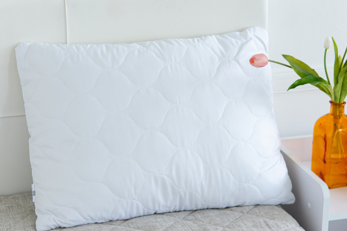 Подушка "Юнибив" бамбук+леб.пух на молнии стеганая м/ф(белая) 550гр, сумка