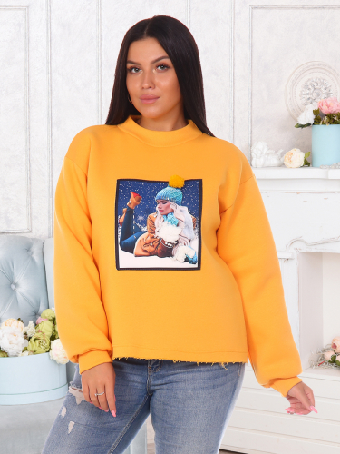Толстовка женская утепленная с оригинальной нашивкой в технике 3D. Манжеты и горловина выполнены из кашкорсе, нижний срез толстовки оставлен открытым.