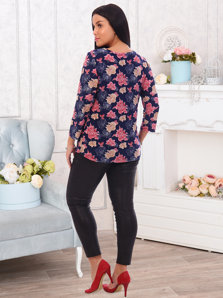 Туника женская с круглым вырезом горловины и рукавом 7/8. Низ туники, горловина, низ рукава обработаны швом в подгибку. Цвет: астра; Материал: масло;масло; Состав: 100% ПЭ.
