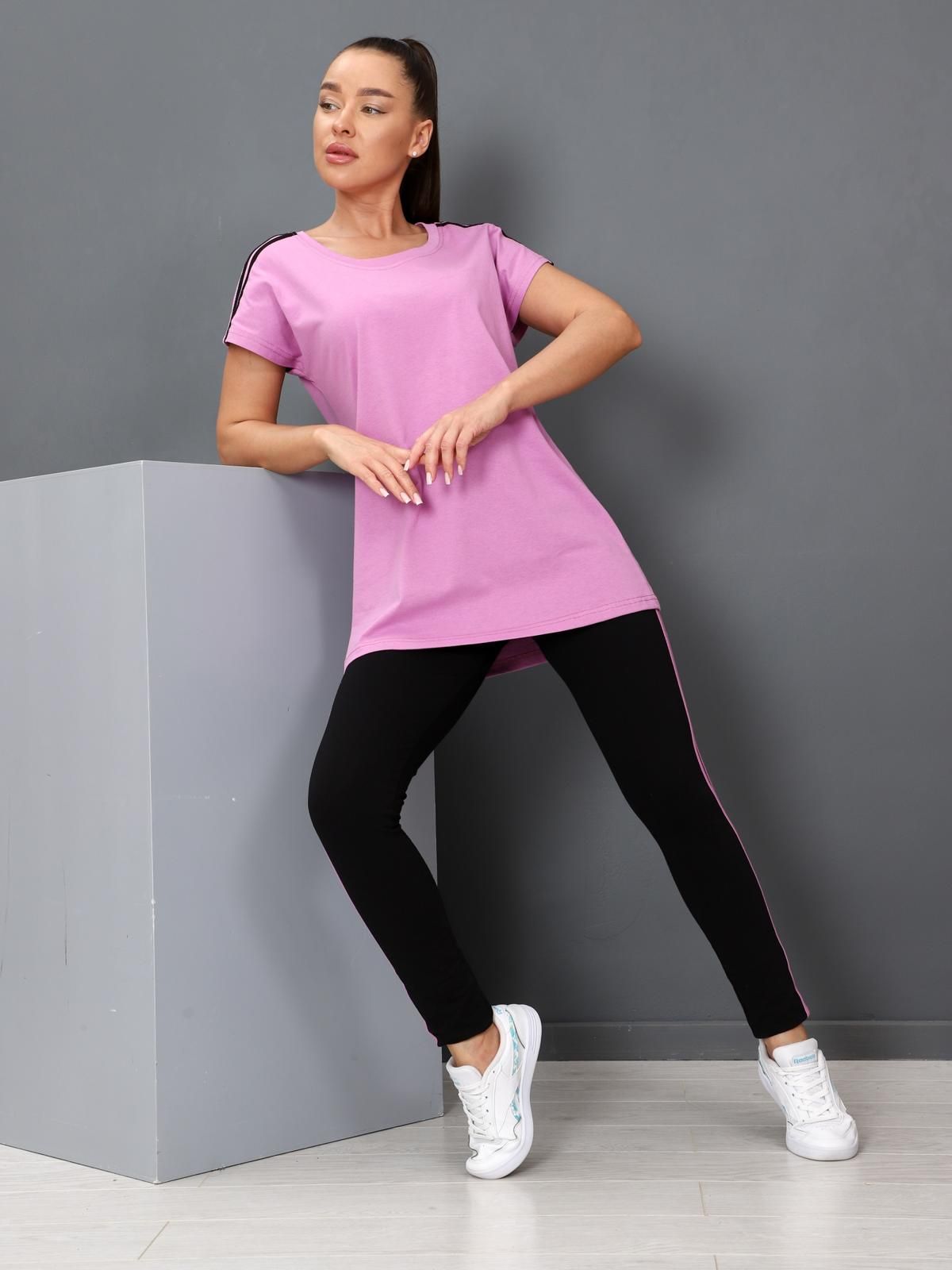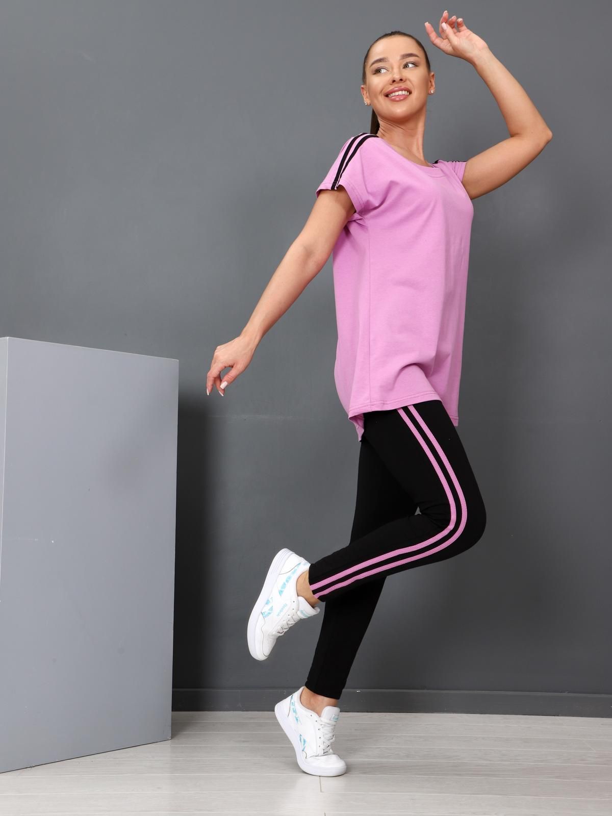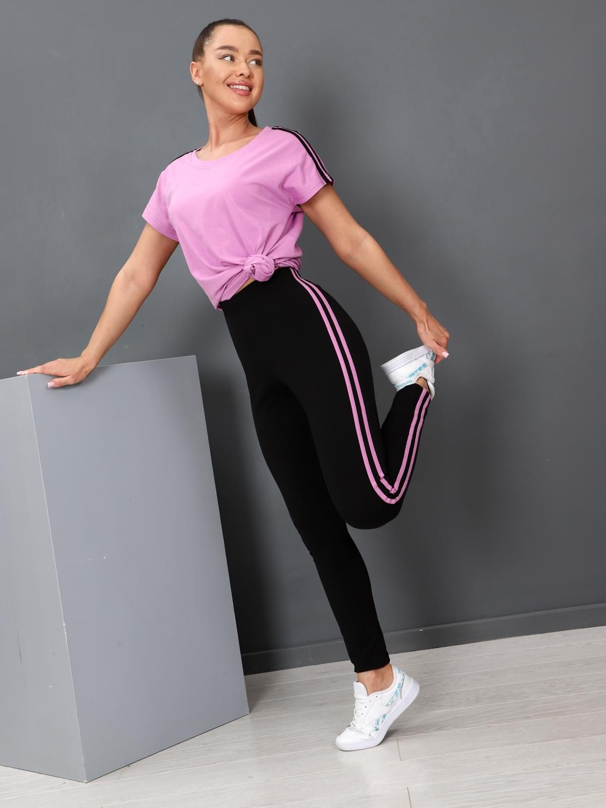 Яркий, удобный и легкий костюм из кулирного полотна высокого качества. Комплектуется полуприлегающей футболкой и брюками с прошитыми полосками по бокам. Костюм прекрасно подойдет для дома и отдыха.