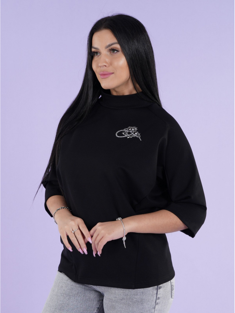 Кофта «Афродита» с роскошной аппликацией из страз и элегантным воротником-стойкой.