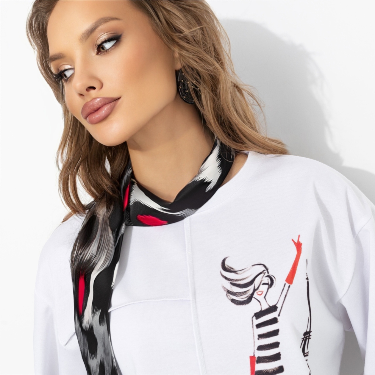 Контрастный чёрно‑красный леопардовый принт создан, чтобы добавлять дерзости даже к простой белой футболке. Носи ленту на ручке багет‑сумки, как чокер на шее или как яркий акцент на поясе джинсов – получится эффект «я ничего не делала, оно само так стильно вышло». Острые кончики и средняя ширина делают ленту универсальной: её удобно завязывать в один оборот вокруг шеи, волос или продевать в ременные петельки.
