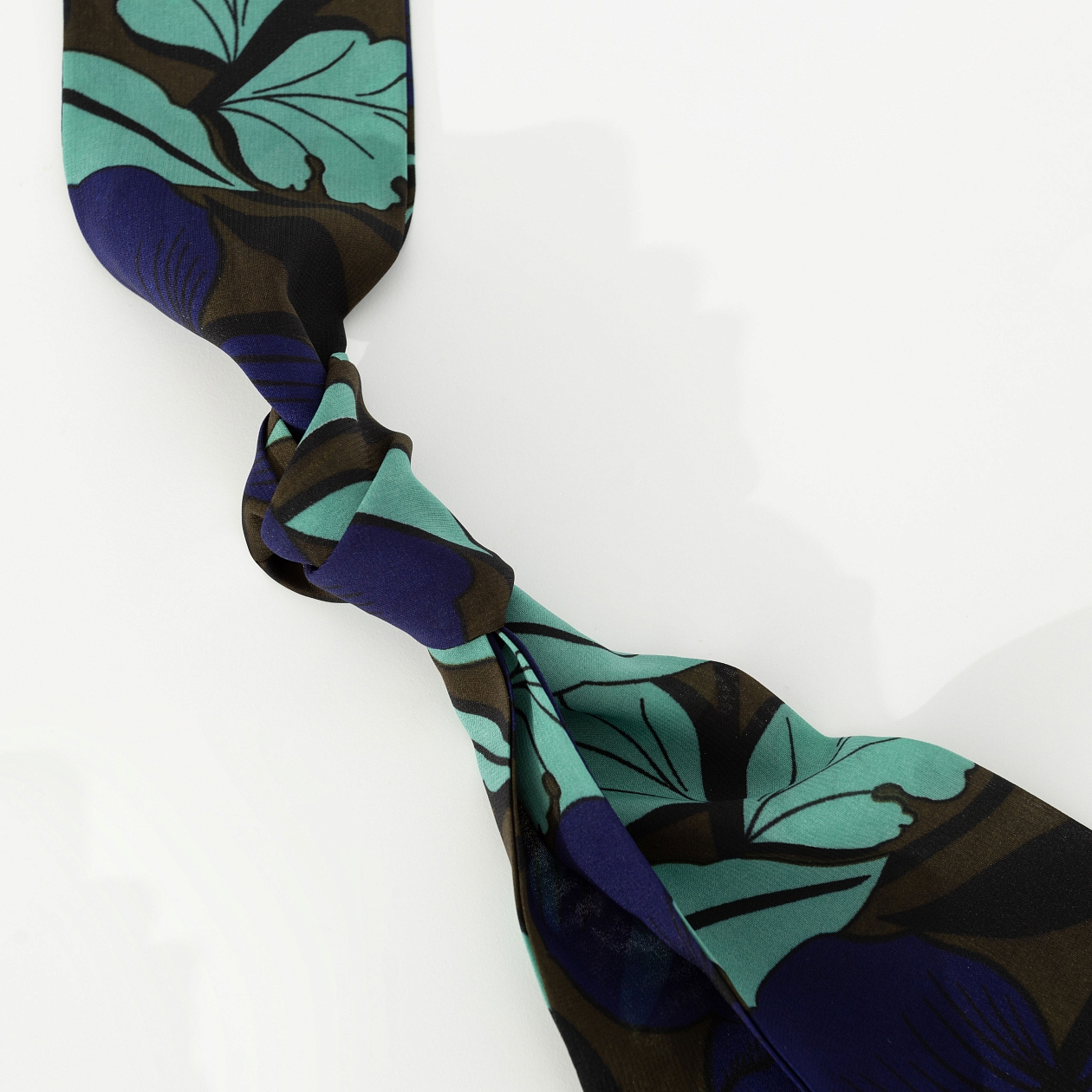 Лента с глубоким синим фоном и крупными цветами сразу делает чёрную сумку или жакет более эффектными, словно кадр из street‑style съёмки. Носи её, завязав на ручке сумки, как мини‑платок на шее или как браслет на запястье – один аксессуар, три разных настроения. Оптимальная длина позволяет несколько раз обернуть ленту вокруг ручки сумки, а заострённые концы красиво смотрятся в узлах и бантах.