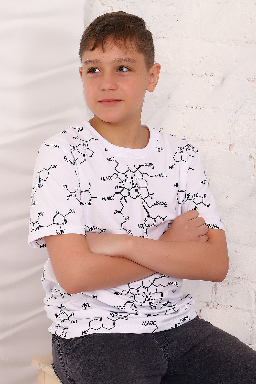 Футболка детская с коротким рукавом. Данная модель выполнена из трикотажного полотна кулирка с лайкрой. Горловина обработана эластичным трикотажным полотном рибана с лайкрой.