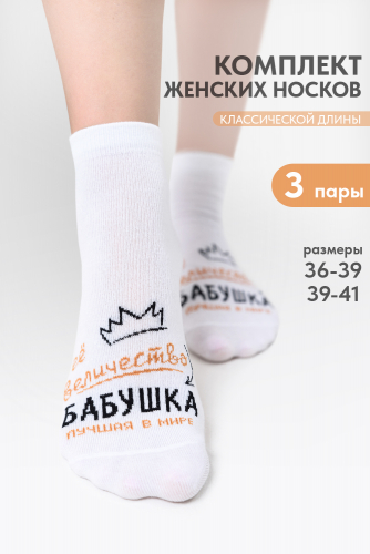 Комплект женских носков 3 пары. На верхней части носка надпись Ее величество Бабушка, лучшая в мире