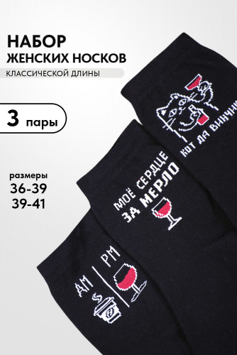 Набор оригинальных женских носочков с надписями. В упаковке 3 пары - по 1 паре каждого вида. Упаковка - пакет