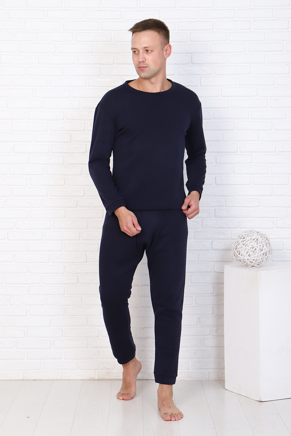Термо белье мужское состоит из толстовки и брюк. Толстовка с длинными рукавами, округлая горловина. Брюки прямого силуэта, низ рукавов и брюк на манжетах, на передней части гульфик. Удобно, тепло и практично.