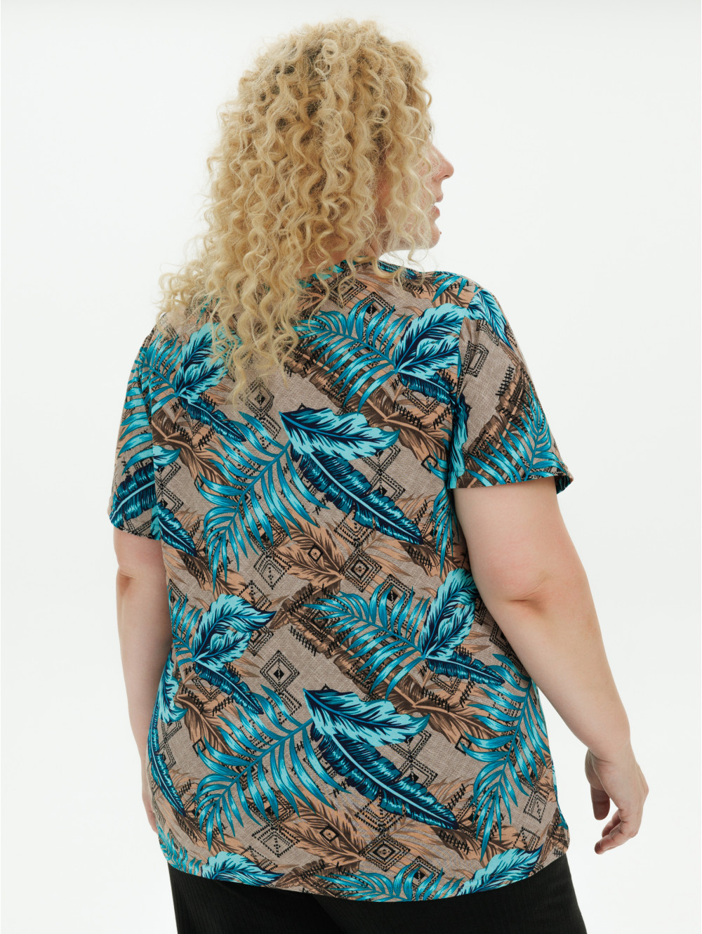 Представляем Вам нашу футболку АННУШКА  для женщин плюс, изготовленную из яркой купонной ткани.