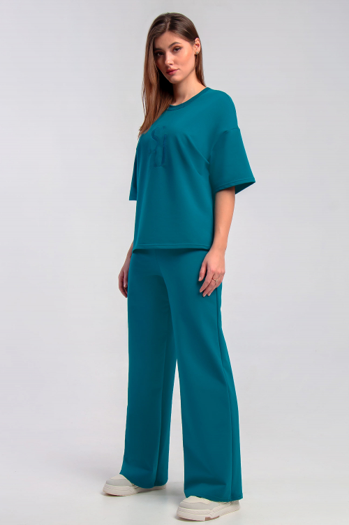 Костюм женский, выполнен из футера двухнитки. Содержание хлопка не менее 75%. Плотность полотна - 250 гр.