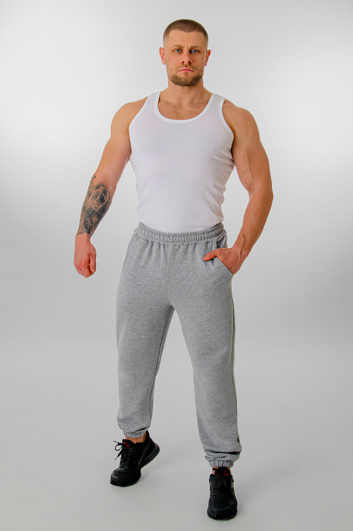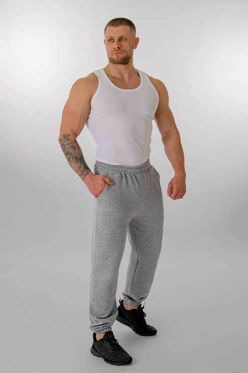 Брюки мужские выполнены из качественного полотна футер трехнитка «Пенье». Содержание хлопка не менее 97%.