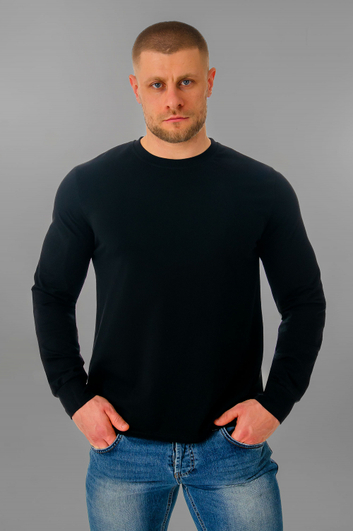 Лонгслив мужской, выполнен из качественного полотна фуллайкра. Содержание хлопка не менее 92%.