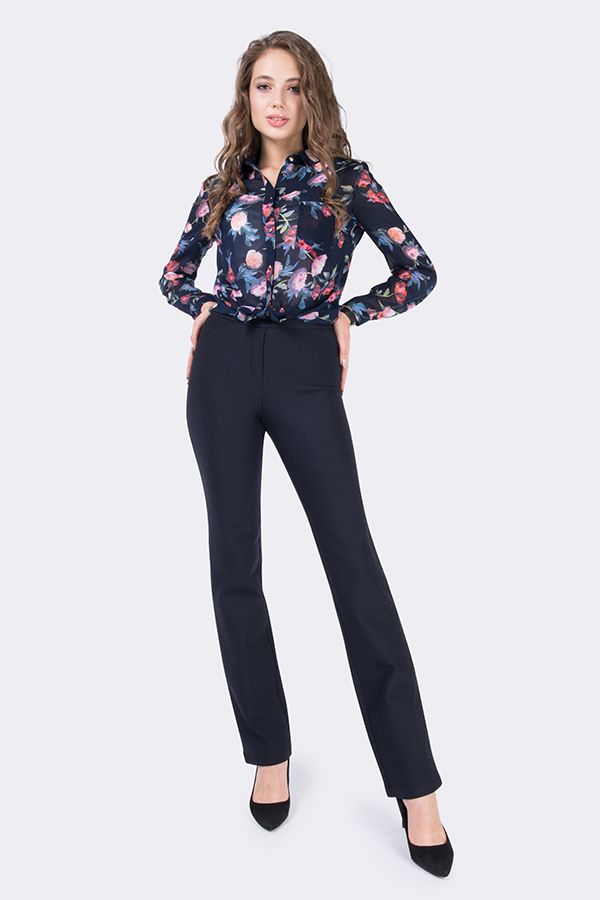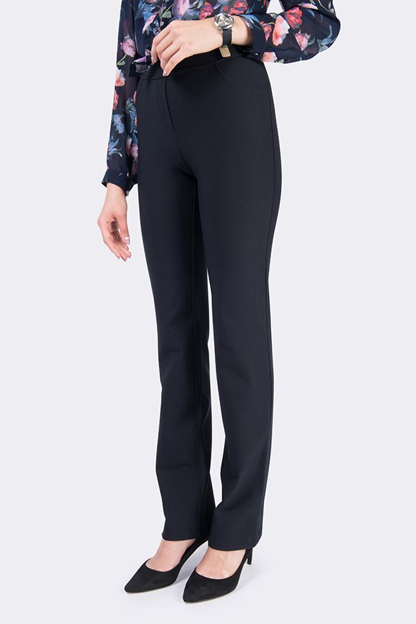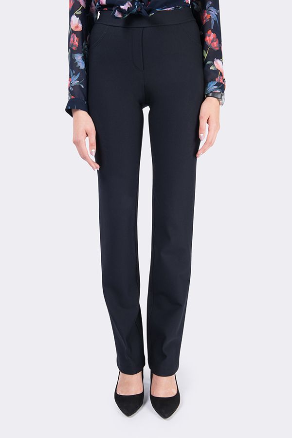 Брюки в молодежном стиле из плотного трикотажного полотна на флисе. Силует: прямой от колена. Детали: модель без застежки, спереди имитация гульфика, имитация боковых карманов, сзади кокетка. Практичная модель для офисных сотрудников. Идеальная посадка на фигуры больших размеров. Уход за изделием: стирка при t=30.  Длина по внутреннему шву - 84 см. Ширина низа - 19,5 см. *Числовые параметры соответствуют размеру 44. Размер модели на фото: 44. Параметры модели:89-62-97. Рост модели на фото: 175 см.
